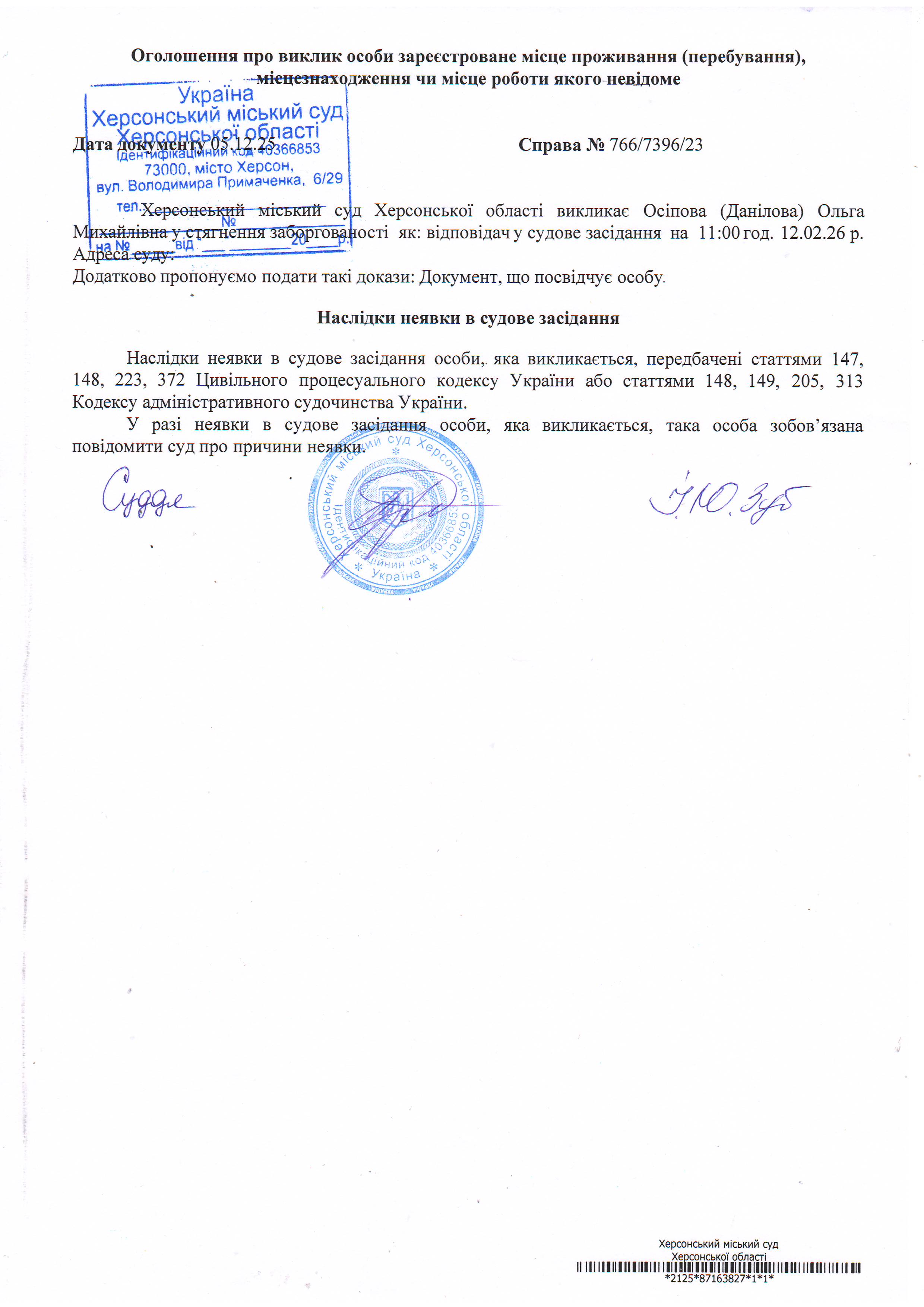 ОГОЛОШЕННЯ ПРО ВИКЛИК ДО СУДУ