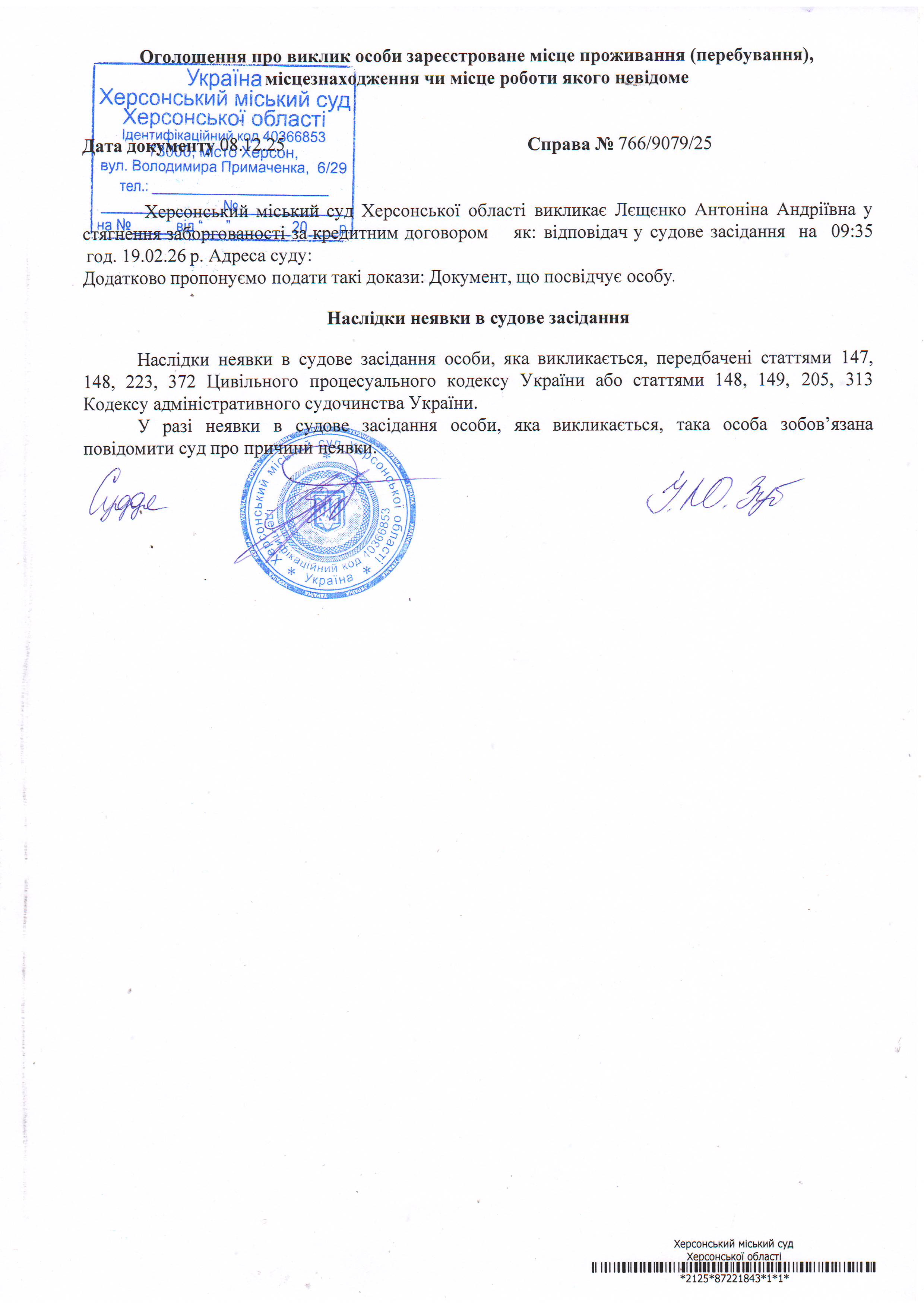 ОГОЛОШЕННЯ ПРО ВИКЛИК ДО СУДУ