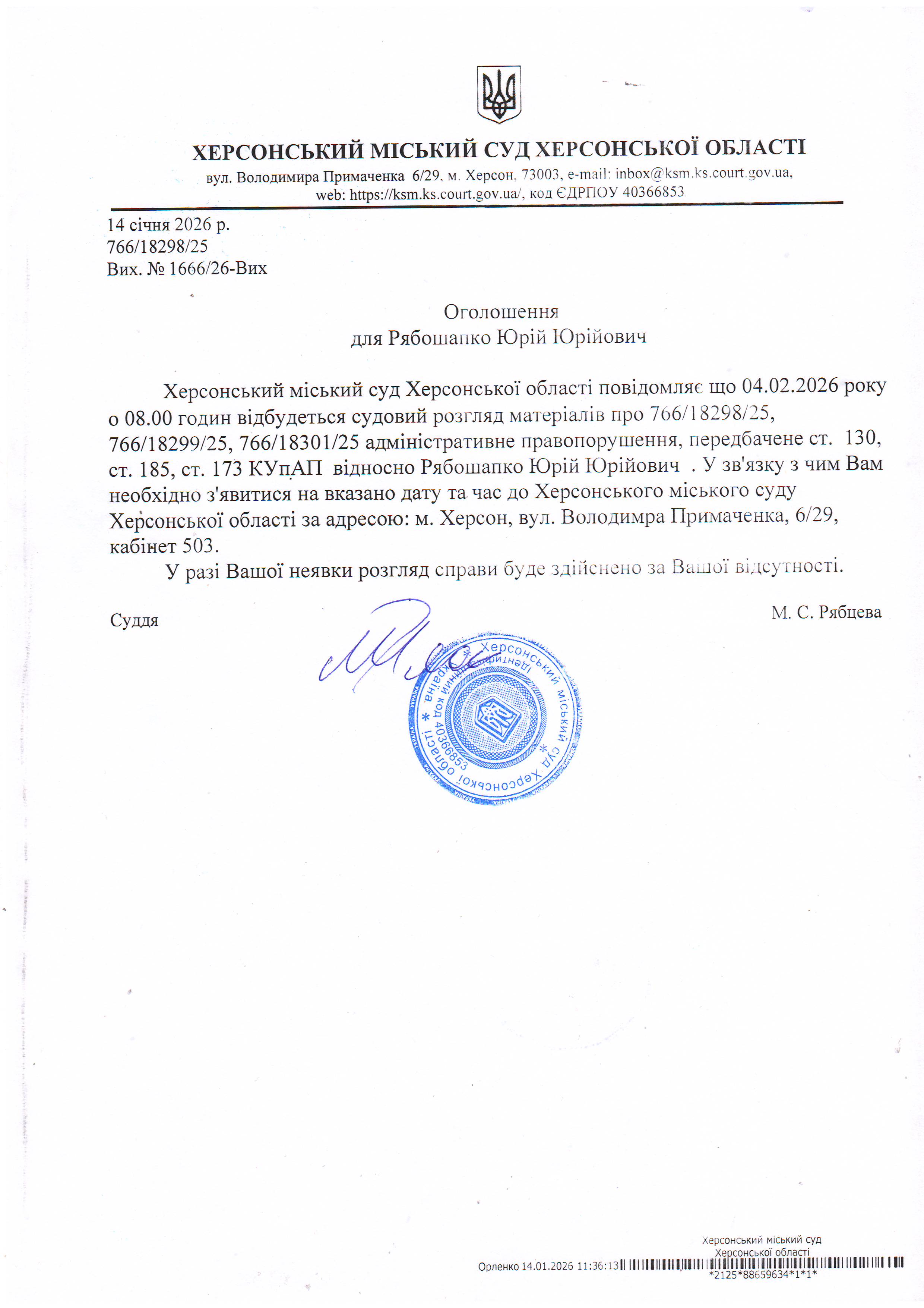 ОГОЛОШЕННЯ ПРО ВИКЛИК ДО СУДУ