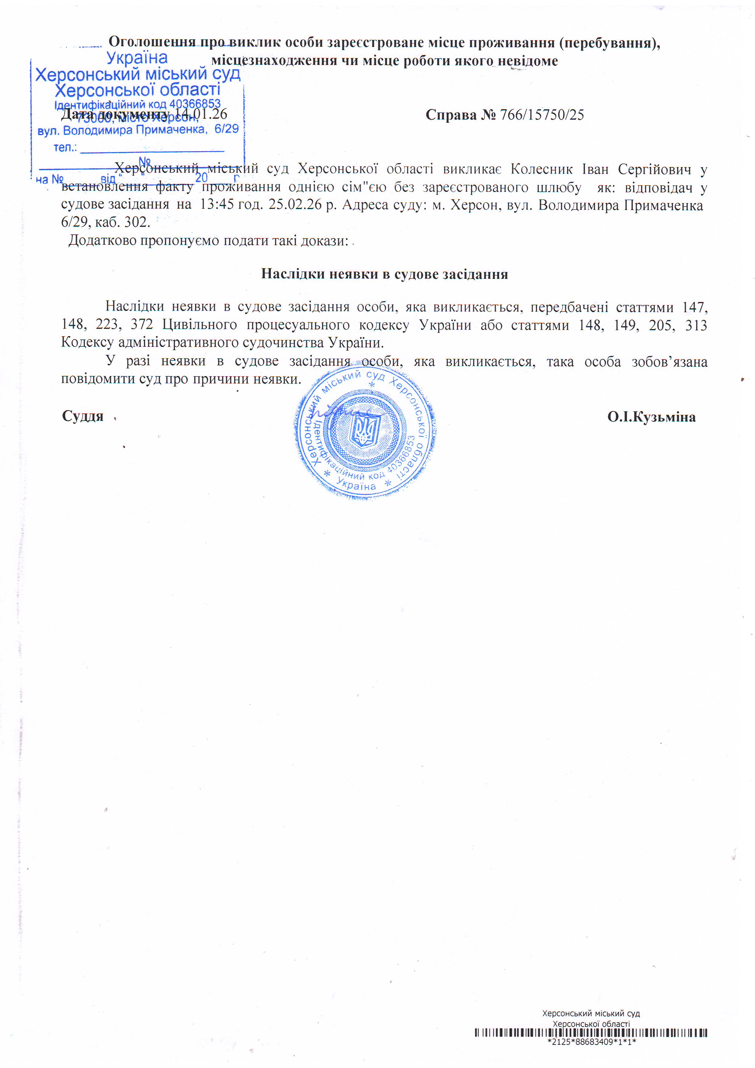 ОГОЛОШЕННЯ ПРО ВИКЛИК ДО СУДУ