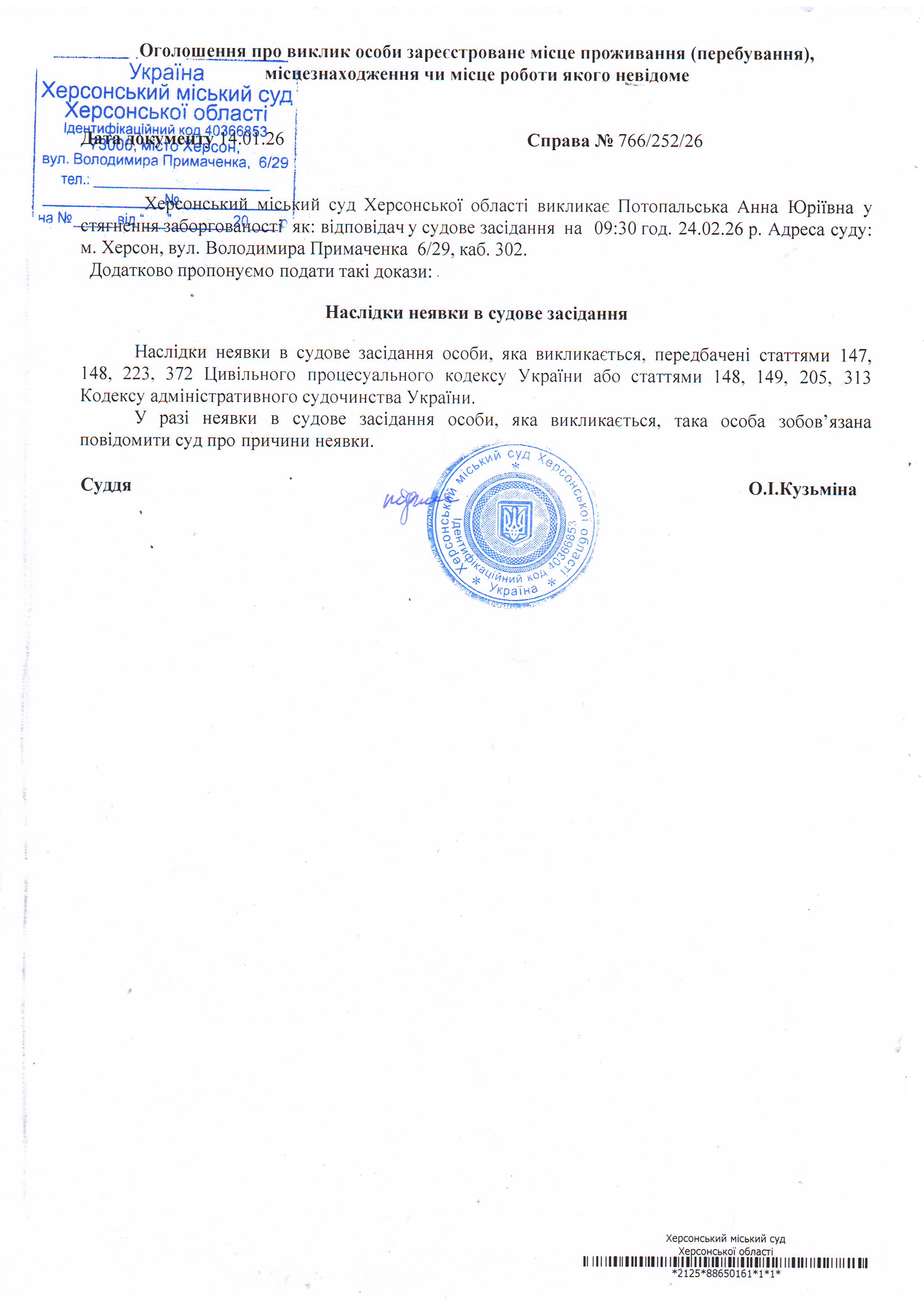 ОГОЛОШЕННЯ ПРО ВИКЛИК ДО СУДУ