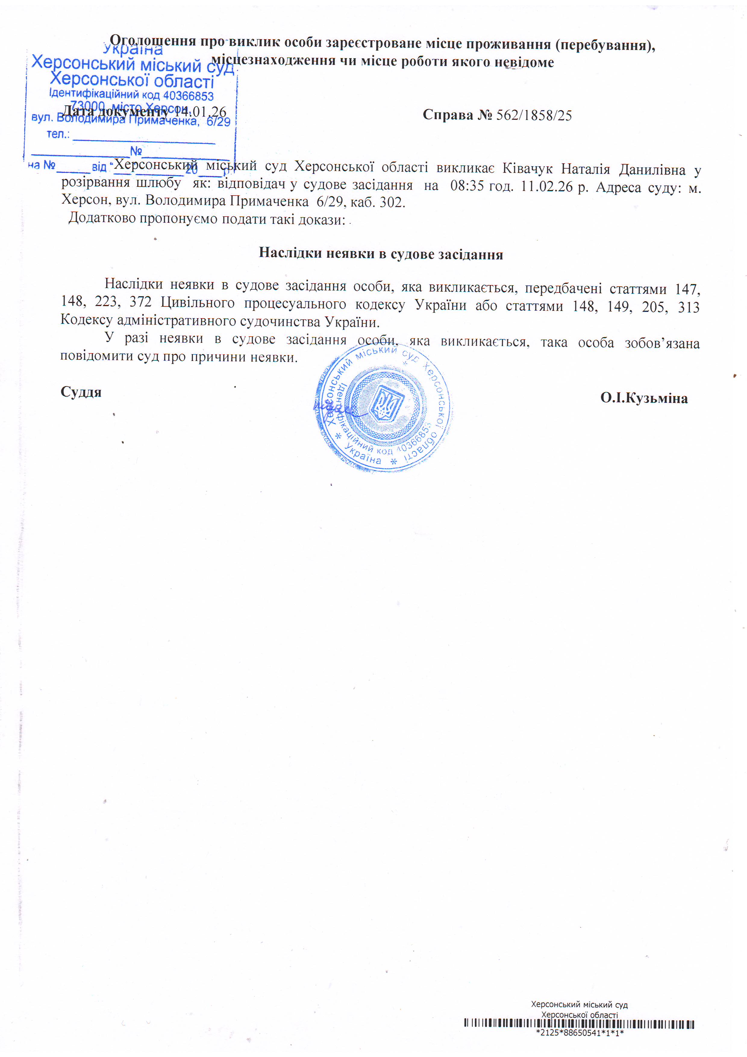 Інформація про місцезнаходження Херсонського міського суду Херсонської області