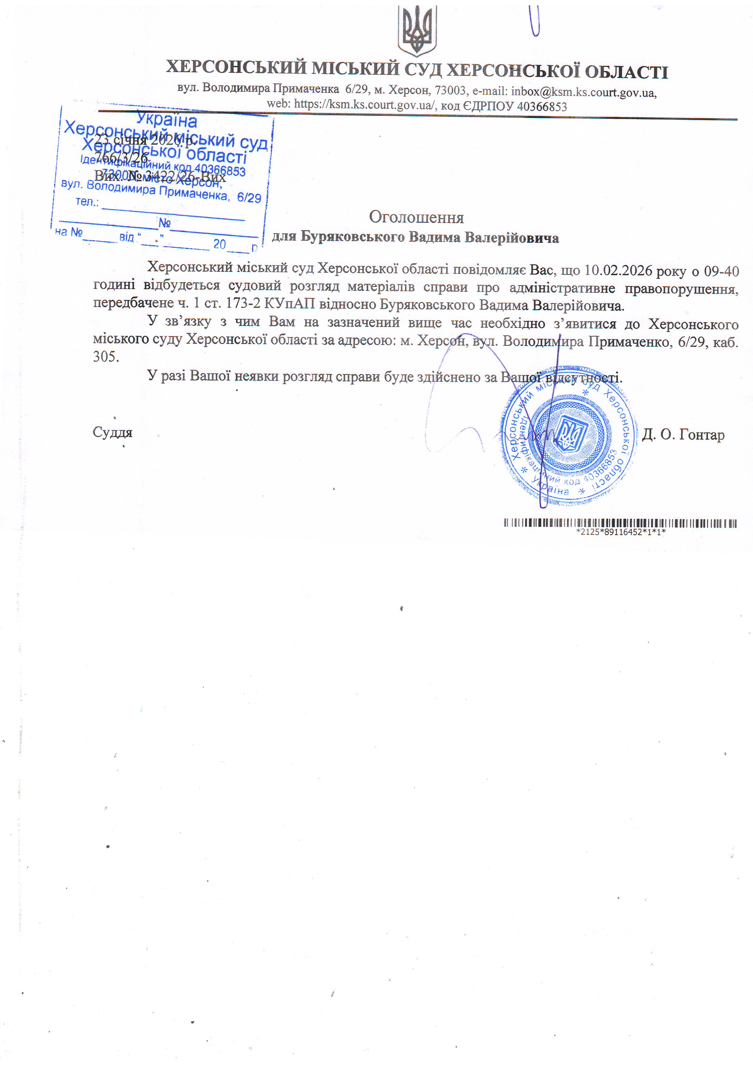 Оголошення про виклик особи в суд та повідомлення про судове рішення