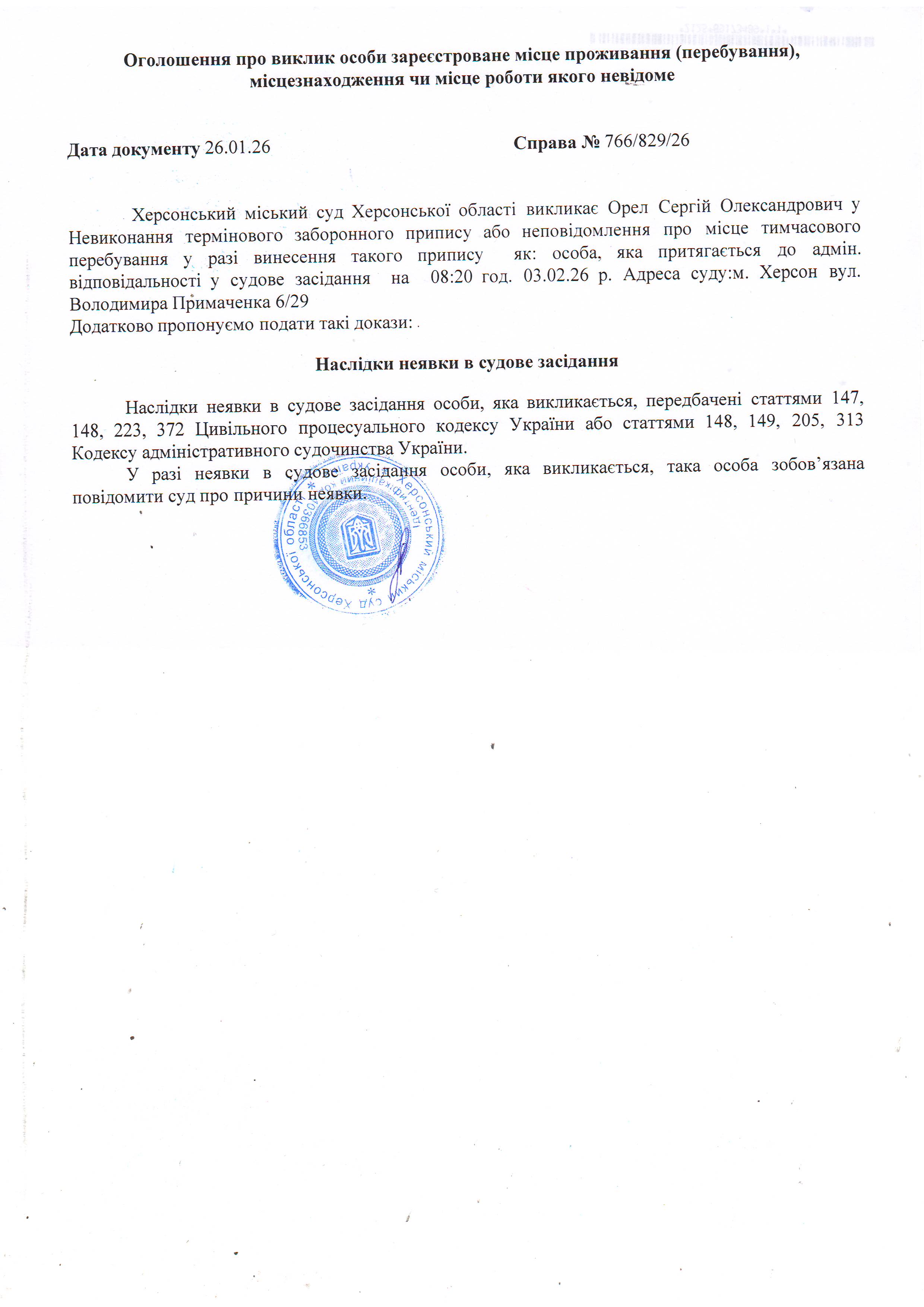 ОГОЛОШЕННЯ ПРО ВИКЛИК ДО СУДУ