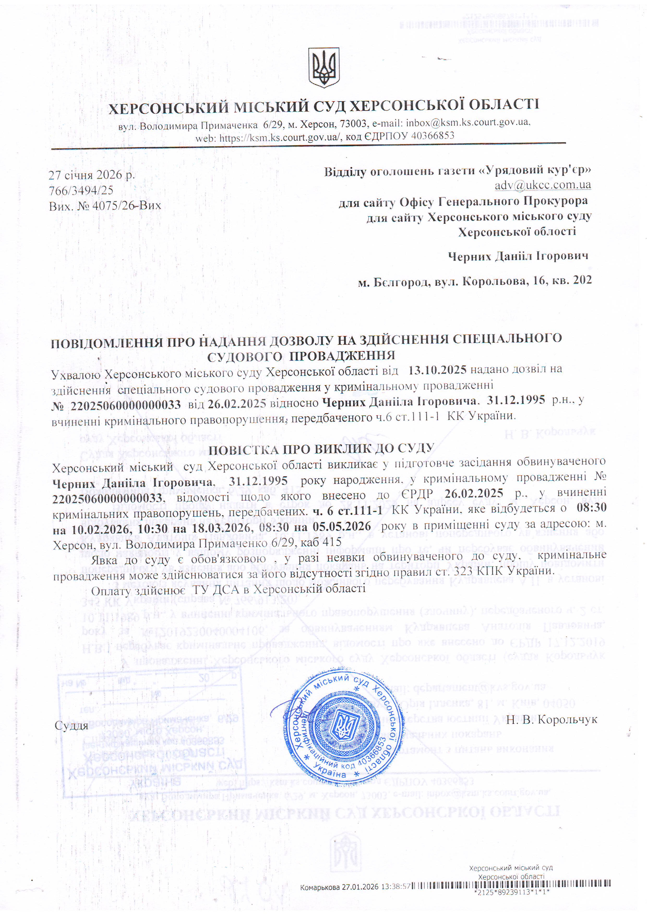 ОГОЛОШЕННЯ ПРО ВИКЛИК ДО СУДУ