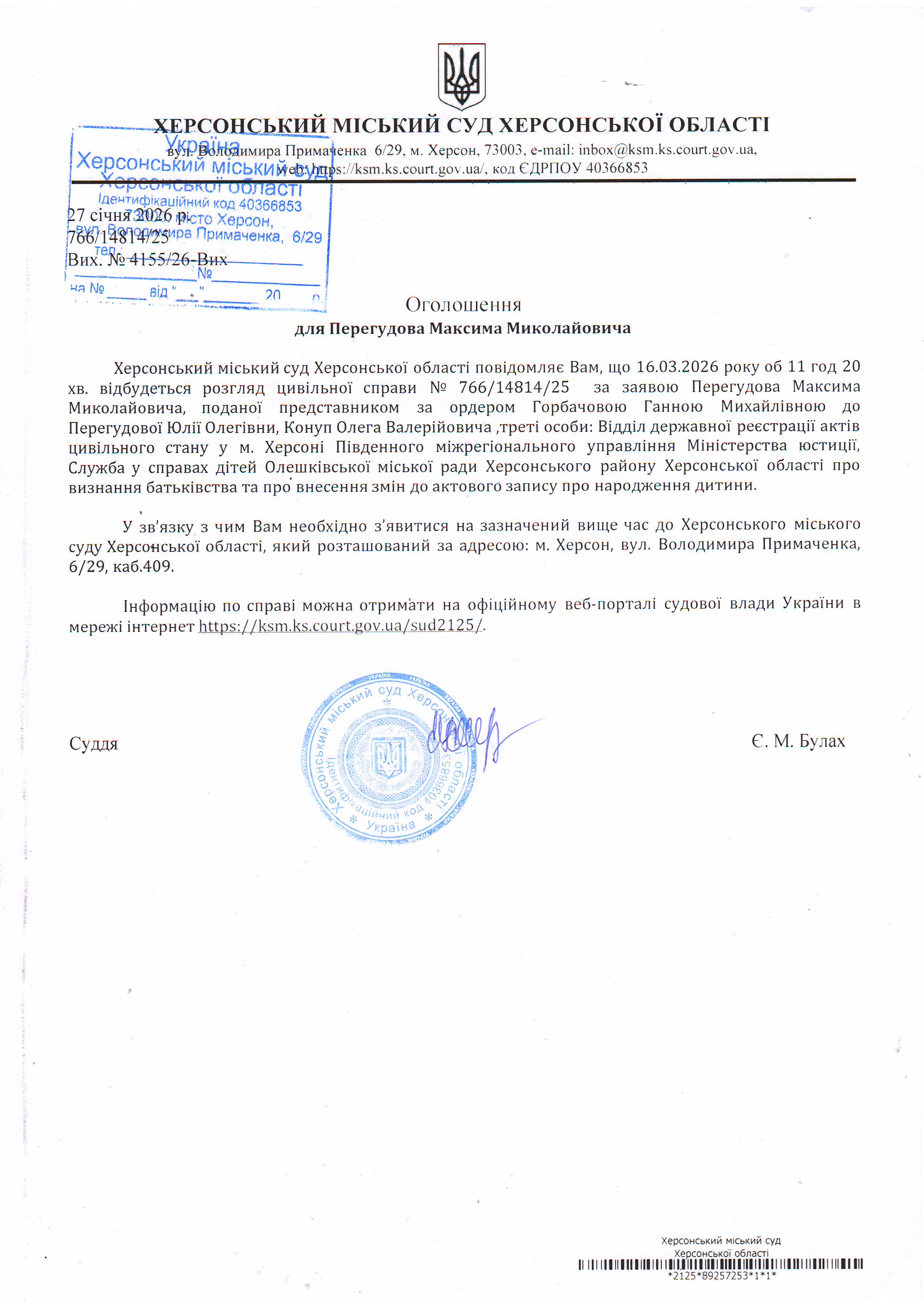 ОГОЛОШЕННЯ ПРО ВИКЛИК ДО СУДУ