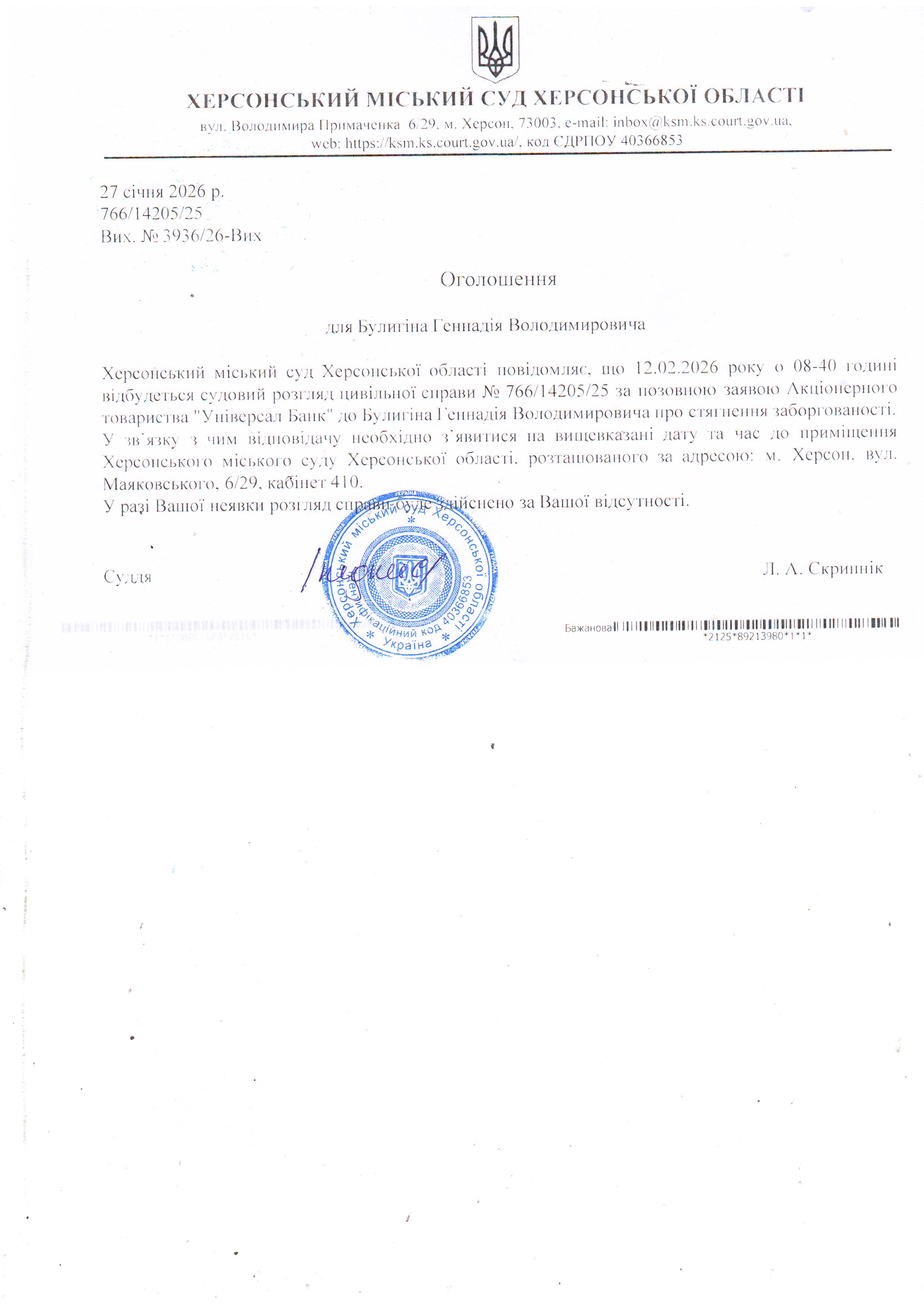 ОГОЛОШЕННЯ ПРО ВИКЛИК ДО СУДУ
