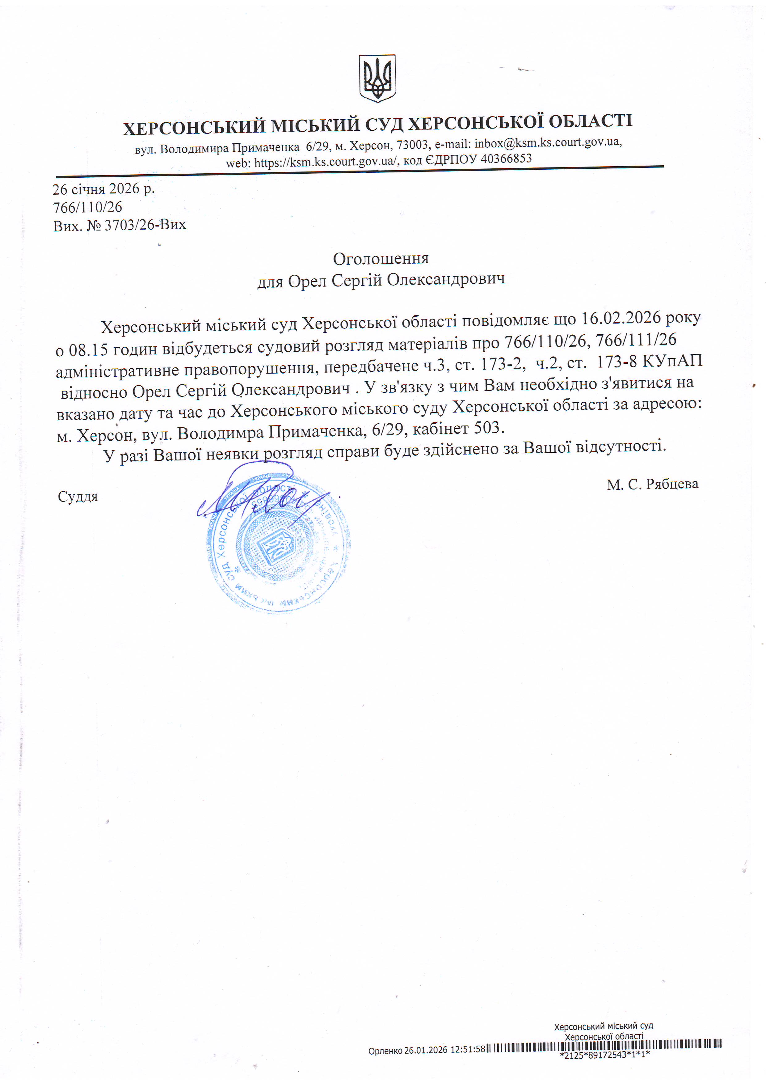 ОГОЛОШЕННЯ ПРО ВИКЛИК ДО СУДУ
