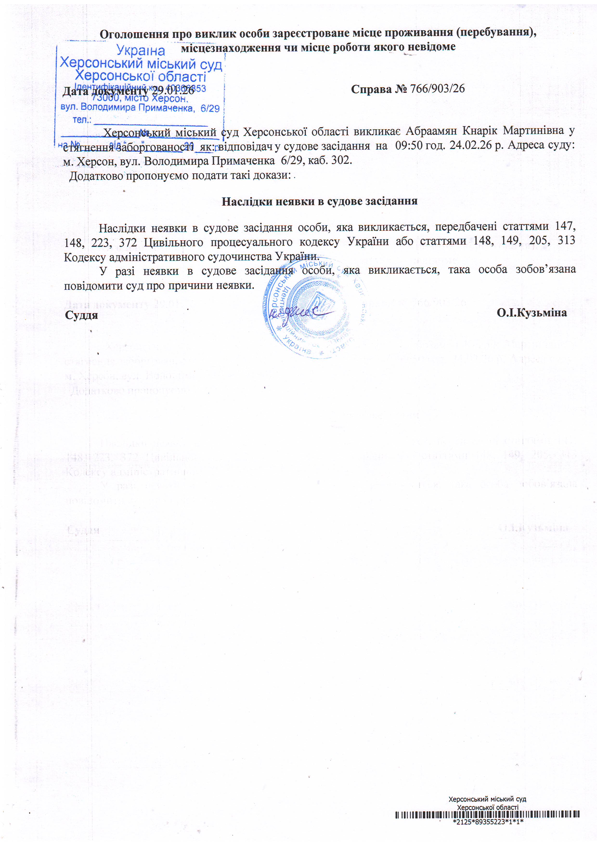 ОГОЛОШЕННЯ ПРО ВИКЛИК ДО СУДУ