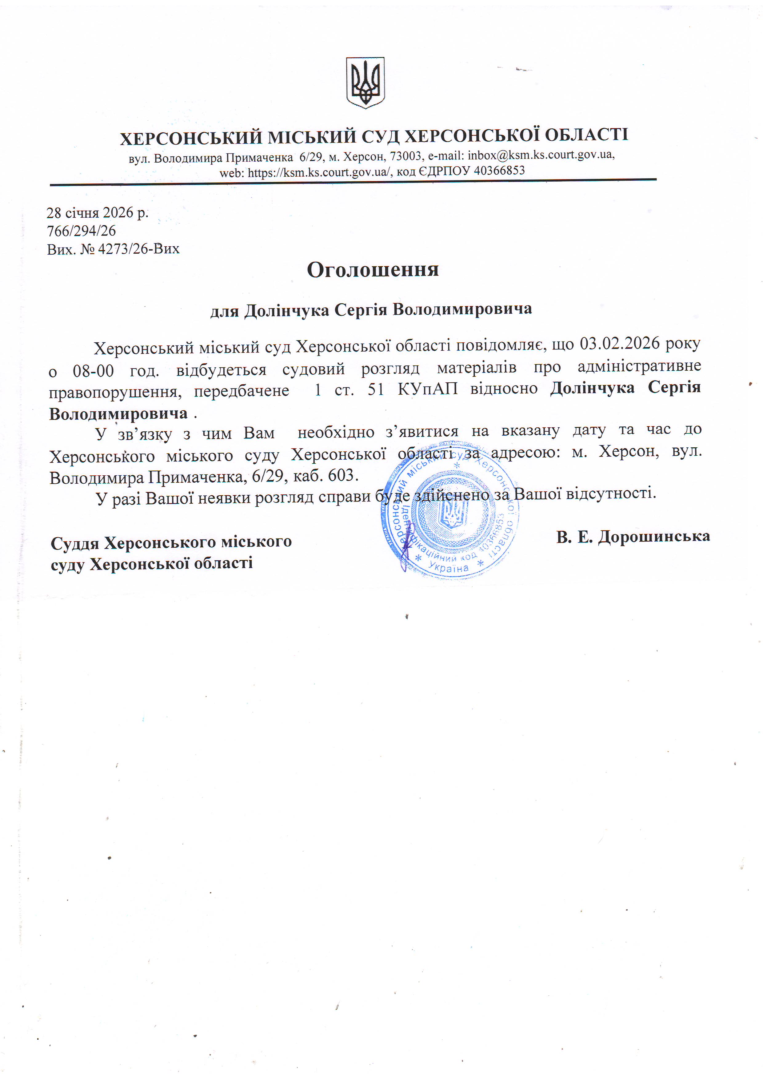 ОГОЛОШЕННЯ ПРО ВИКЛИК ДО СУДУ
