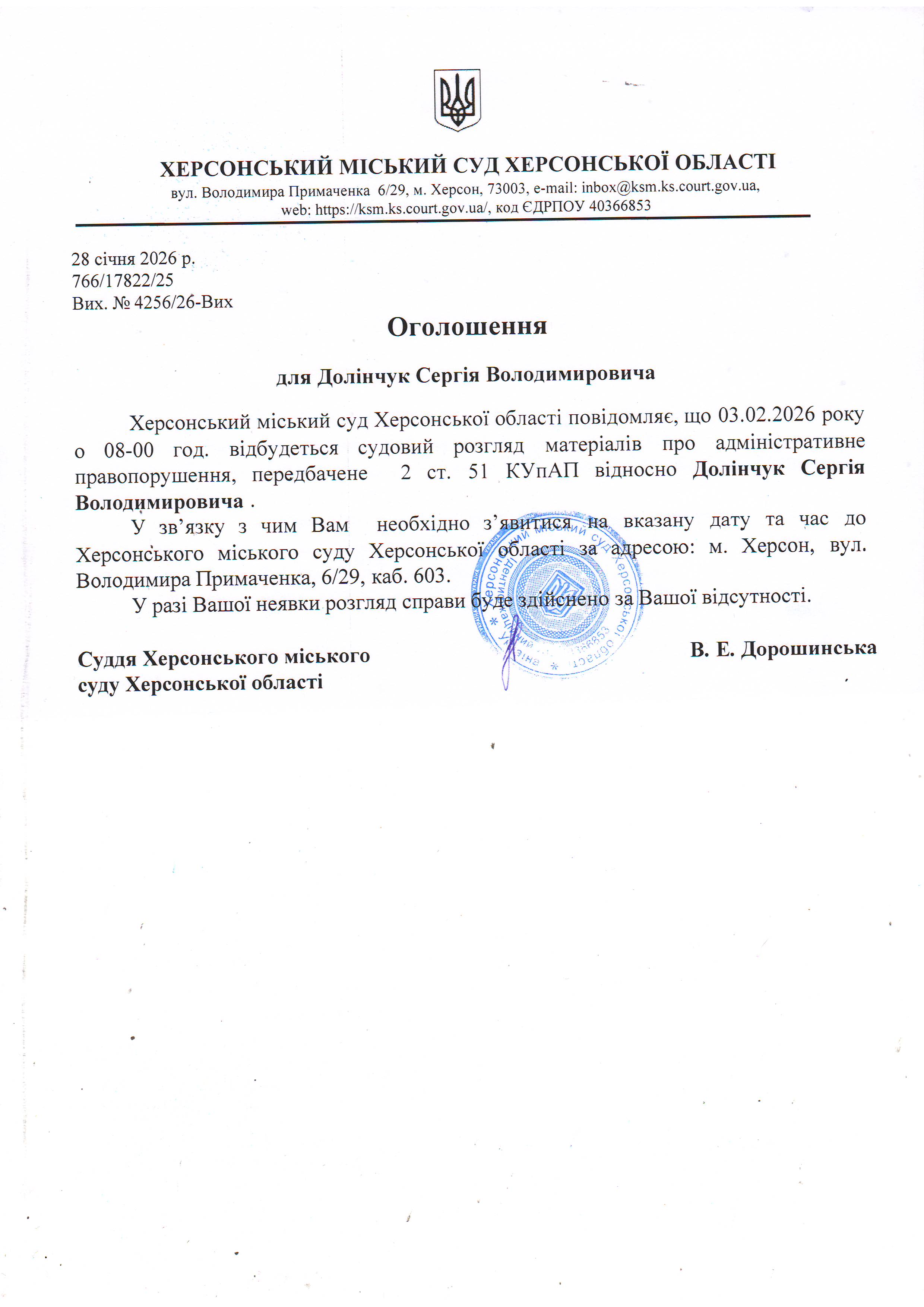 ОГОЛОШЕННЯ ПРО ВИКЛИК ДО СУДУ
