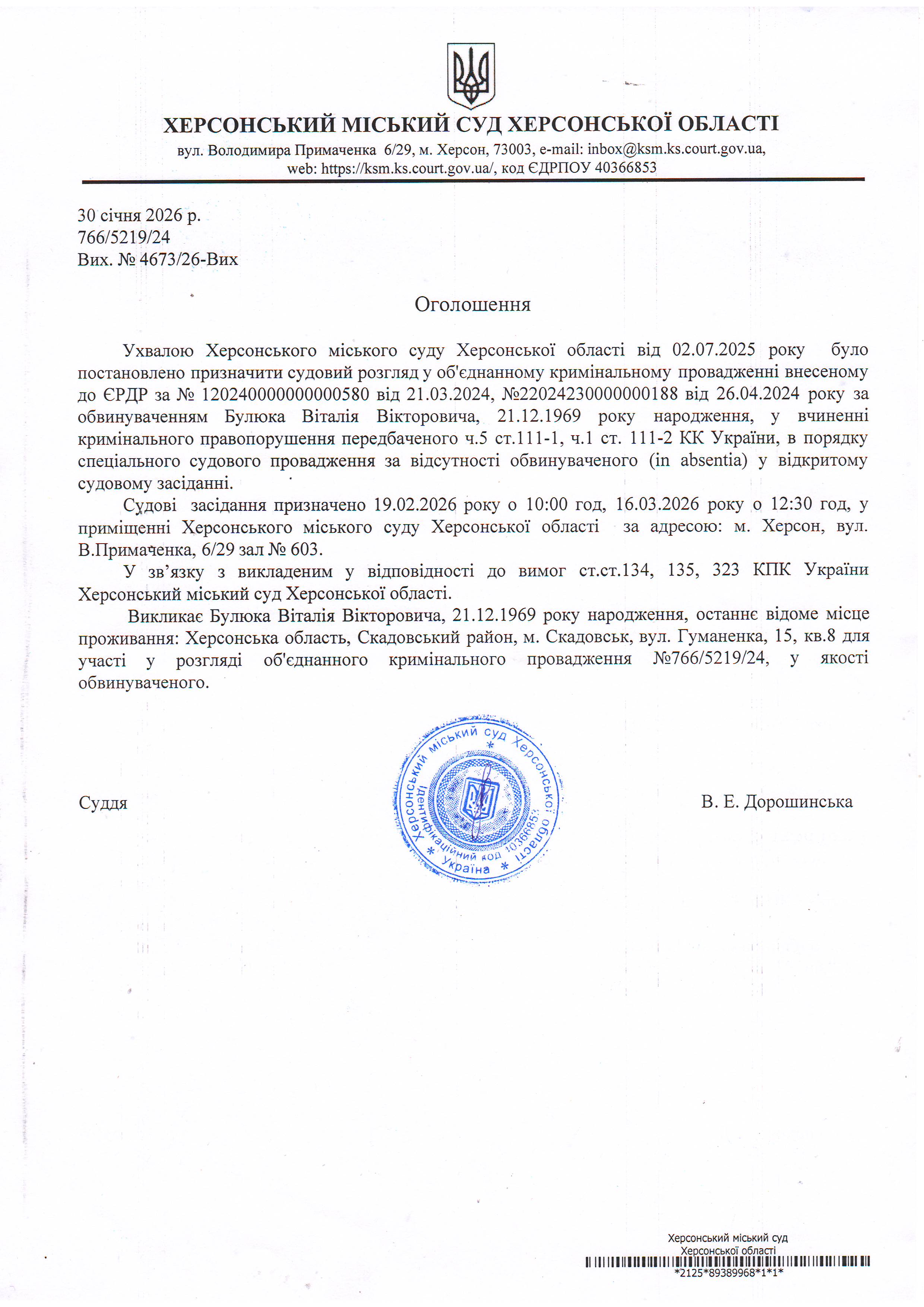 ОГОЛОШЕННЯ ПРО ВИКЛИК ДО СУДУ