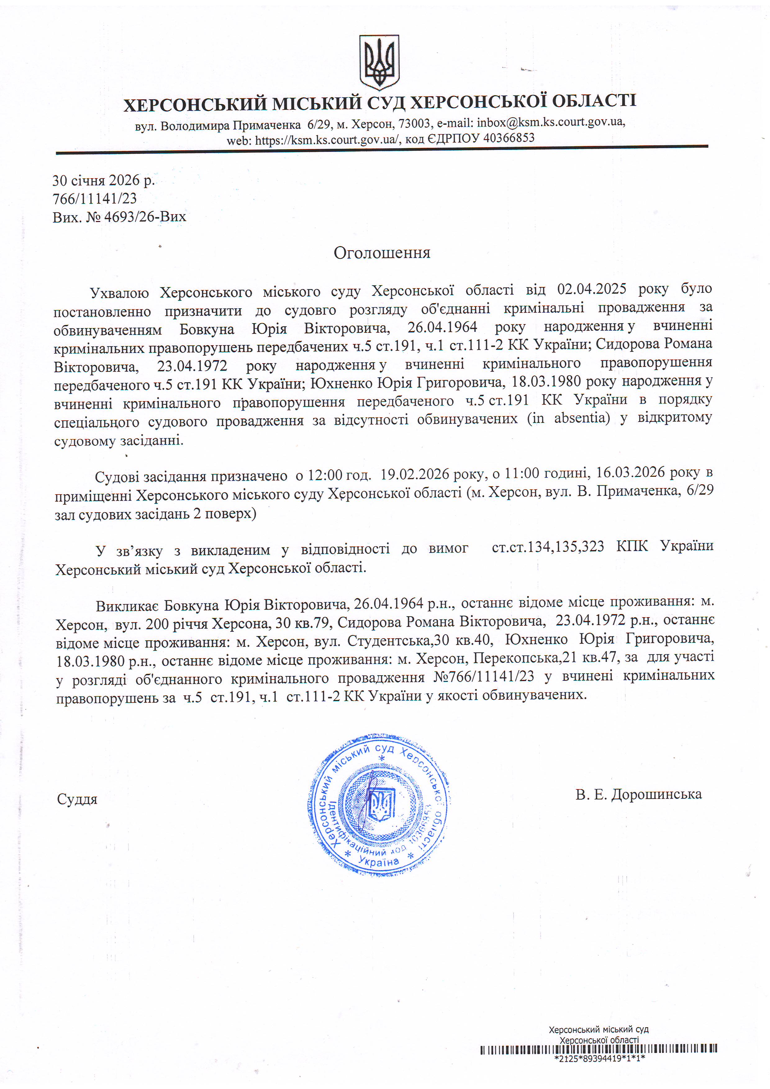 ОГОЛОШЕННЯ, УХВАЛИ ТА ЗАОЧНІ РІШЕННЯ