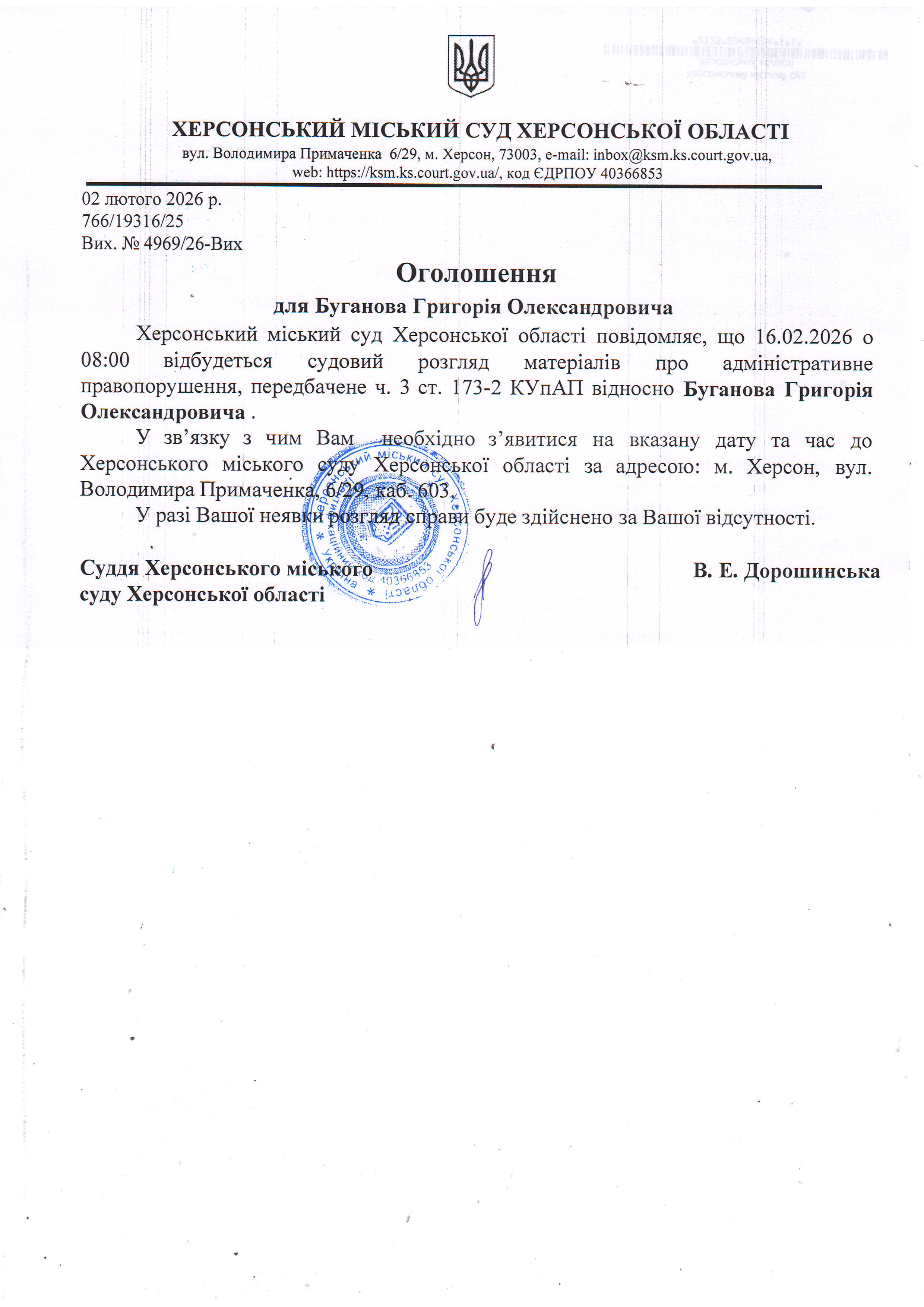 ОГОЛОШЕННЯ ПРО ВИКЛИК ДО СУДУ