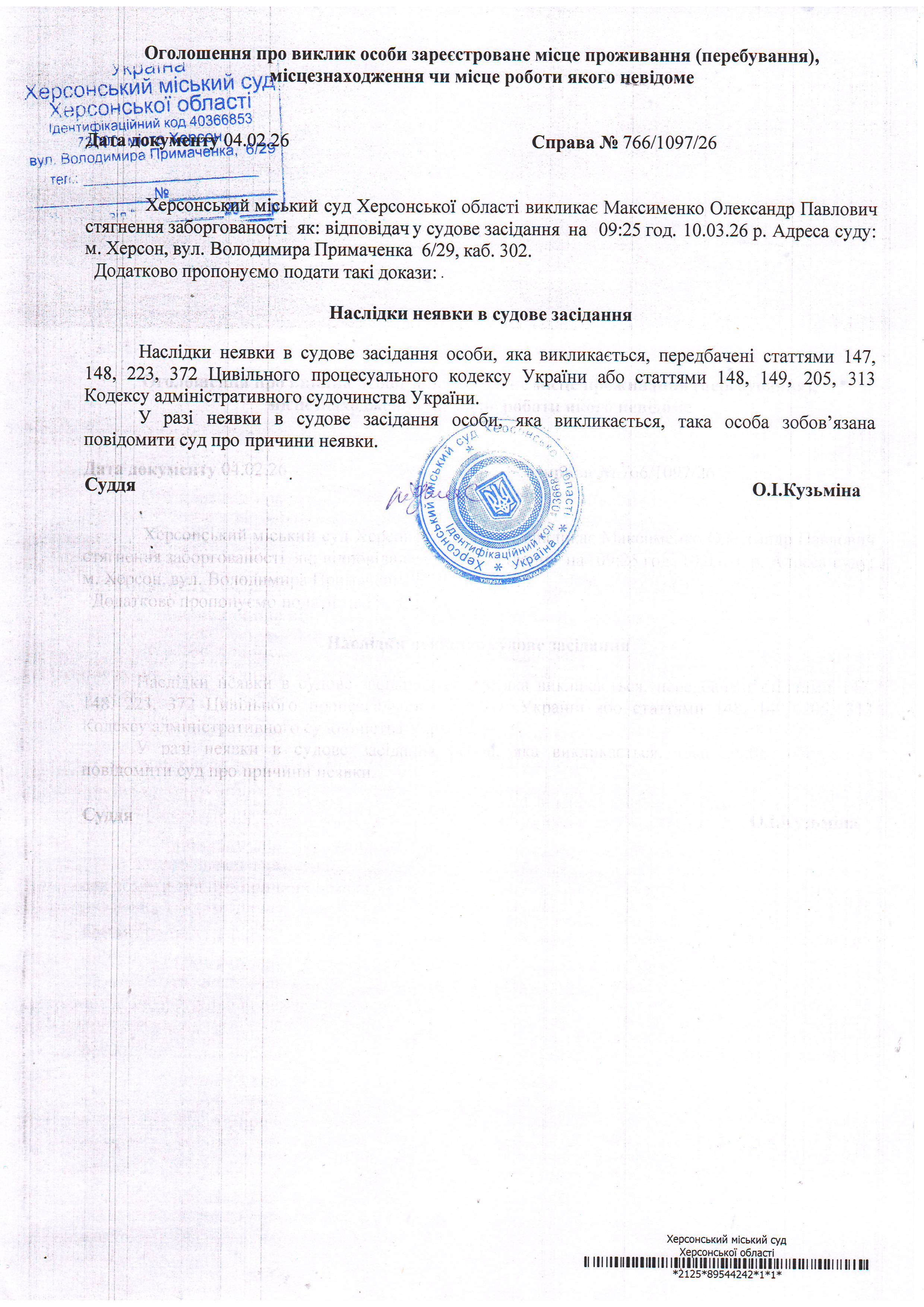 ОГОЛОШЕННЯ ПРО ВИКЛИК ДО СУДУ