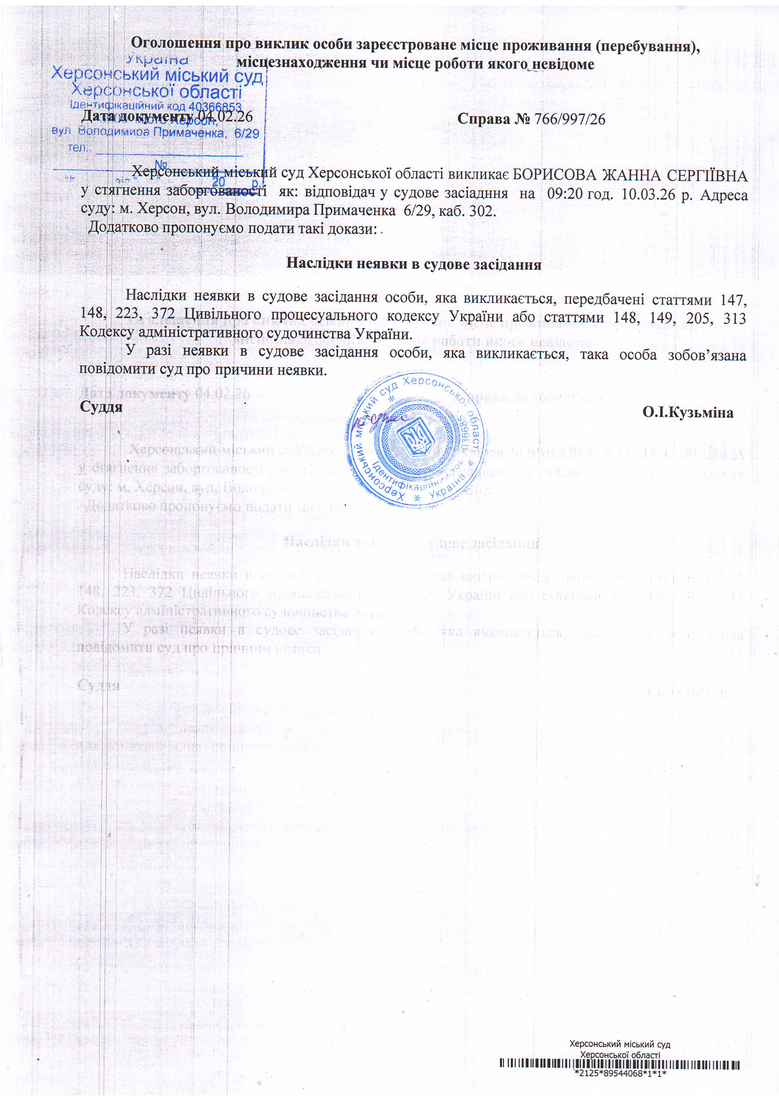 ОГОЛОШЕННЯ ПРО ВИКЛИК ДО СУДУ