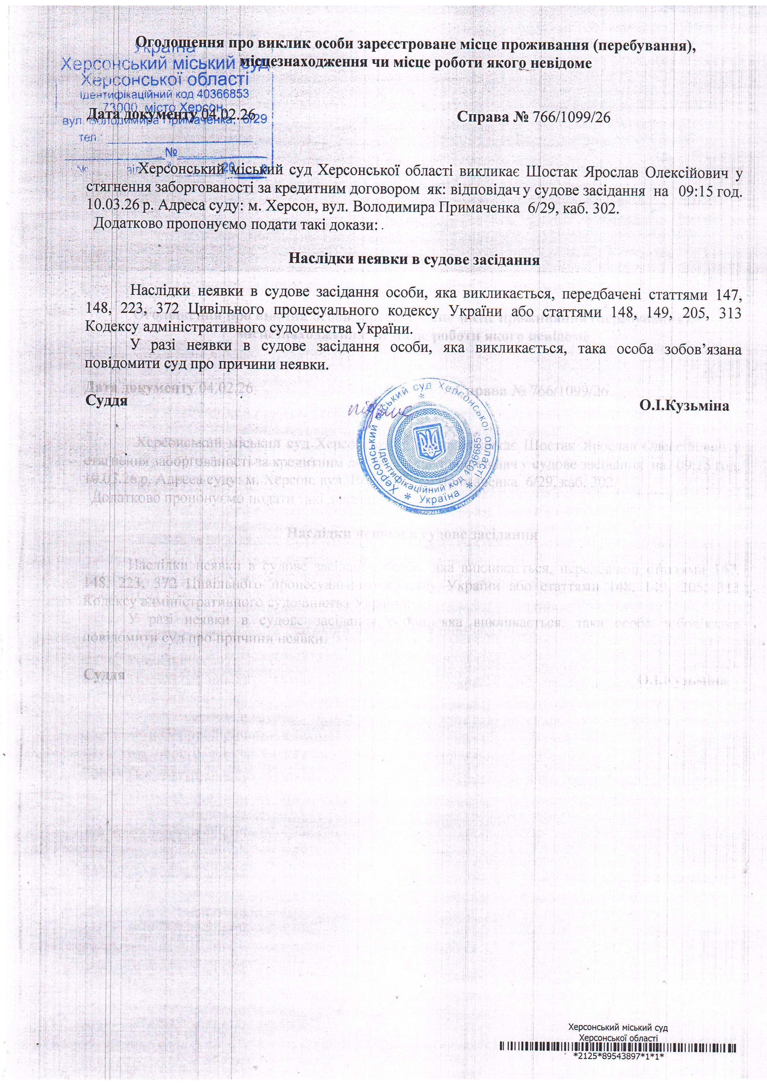 ОГОЛОШЕННЯ ПРО ВИКЛИК ДО СУДУ