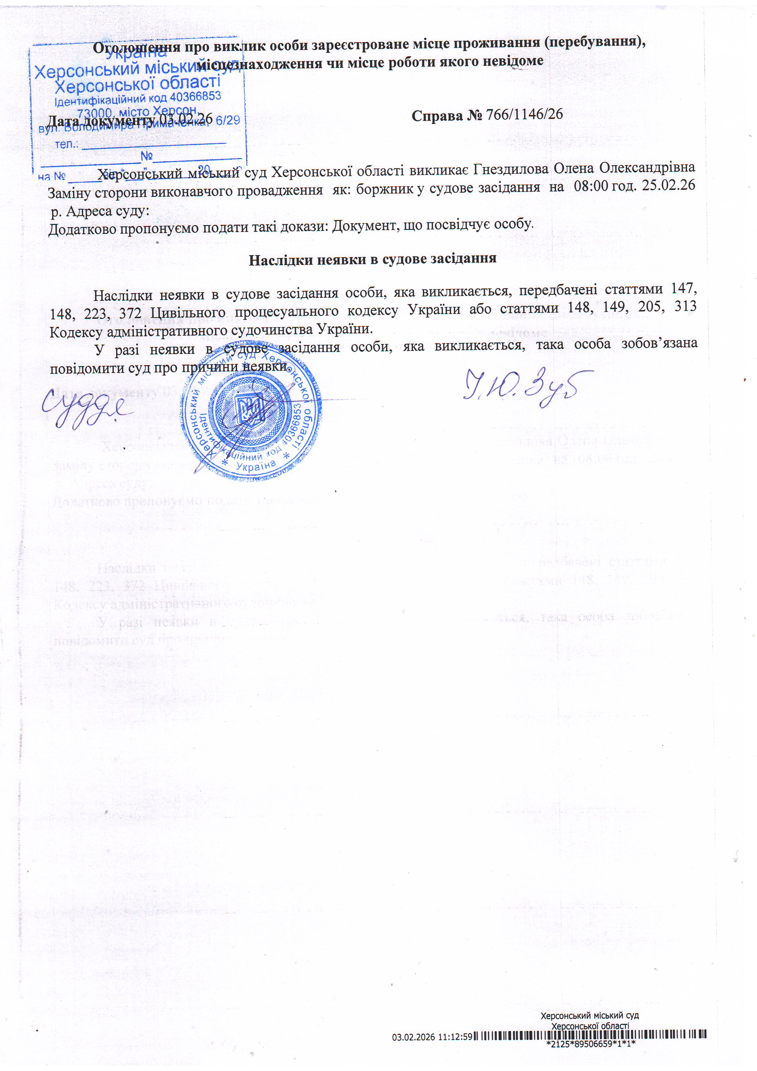 ОГОЛОШЕННЯ ПРО ВИКЛИК ДО СУДУ
