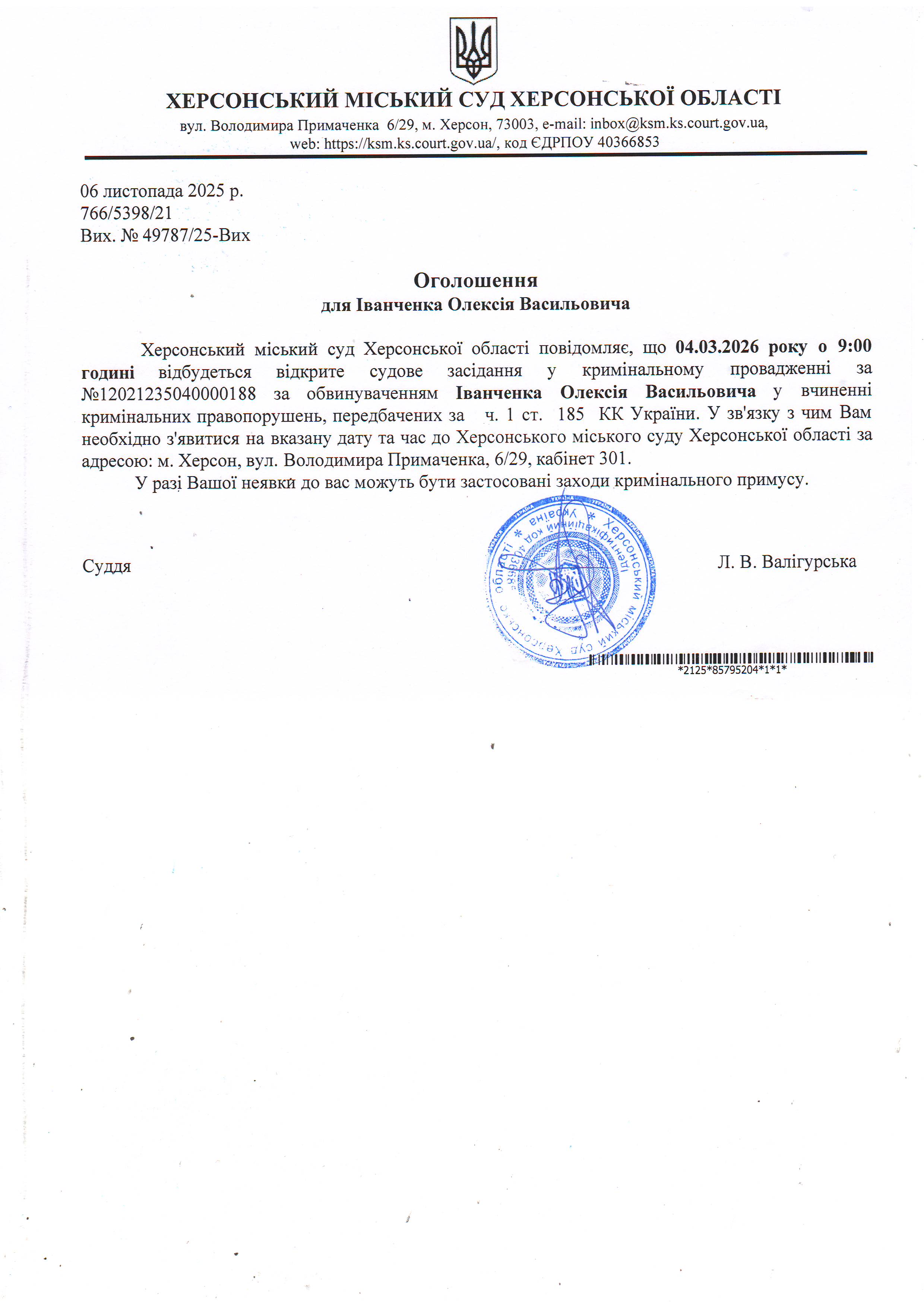 ОГОЛОШЕННЯ ПРО ВИКЛИК ДО СУДУ