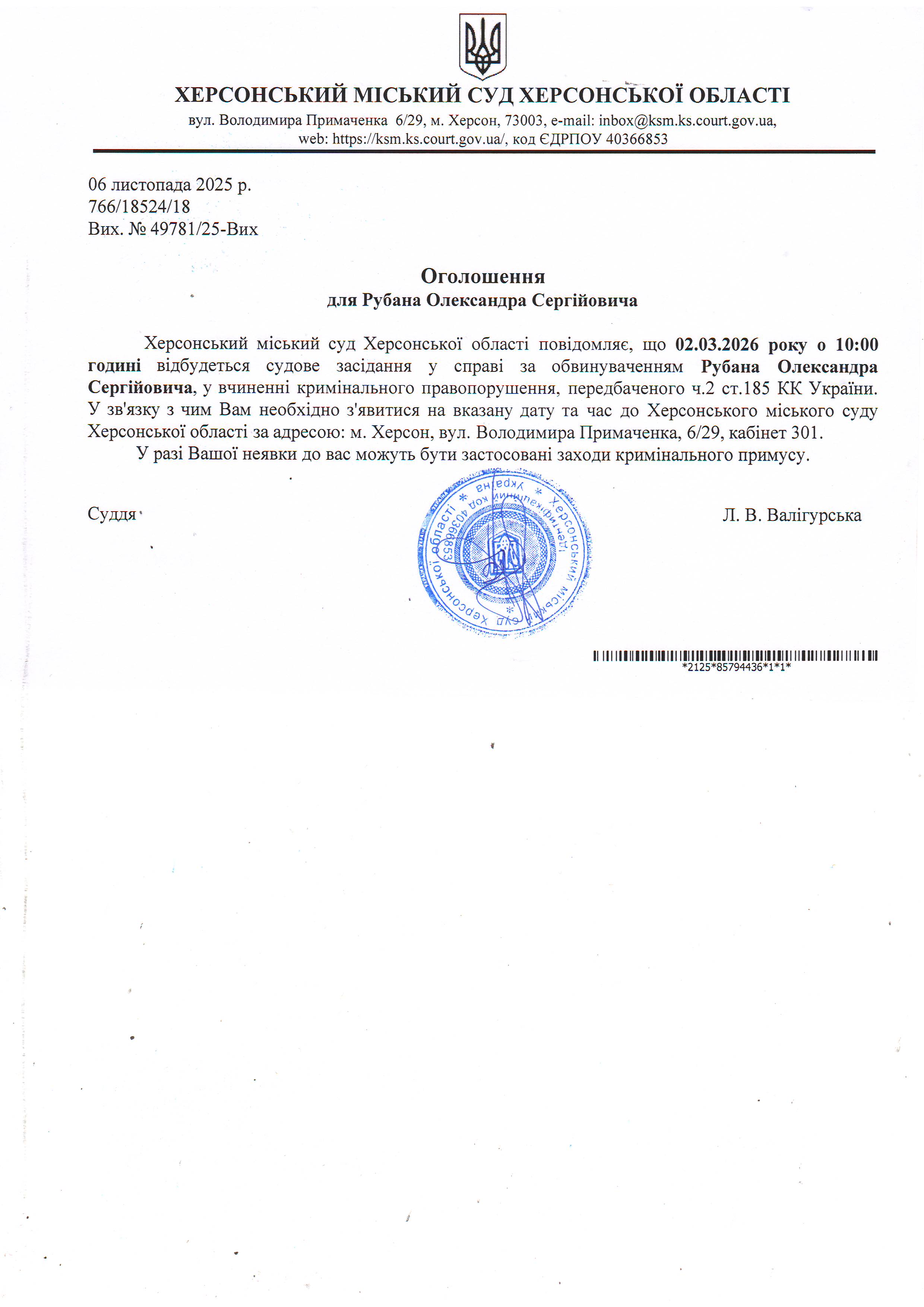 ОГОЛОШЕННЯ ПРО ВИКЛИК ДО СУДУ