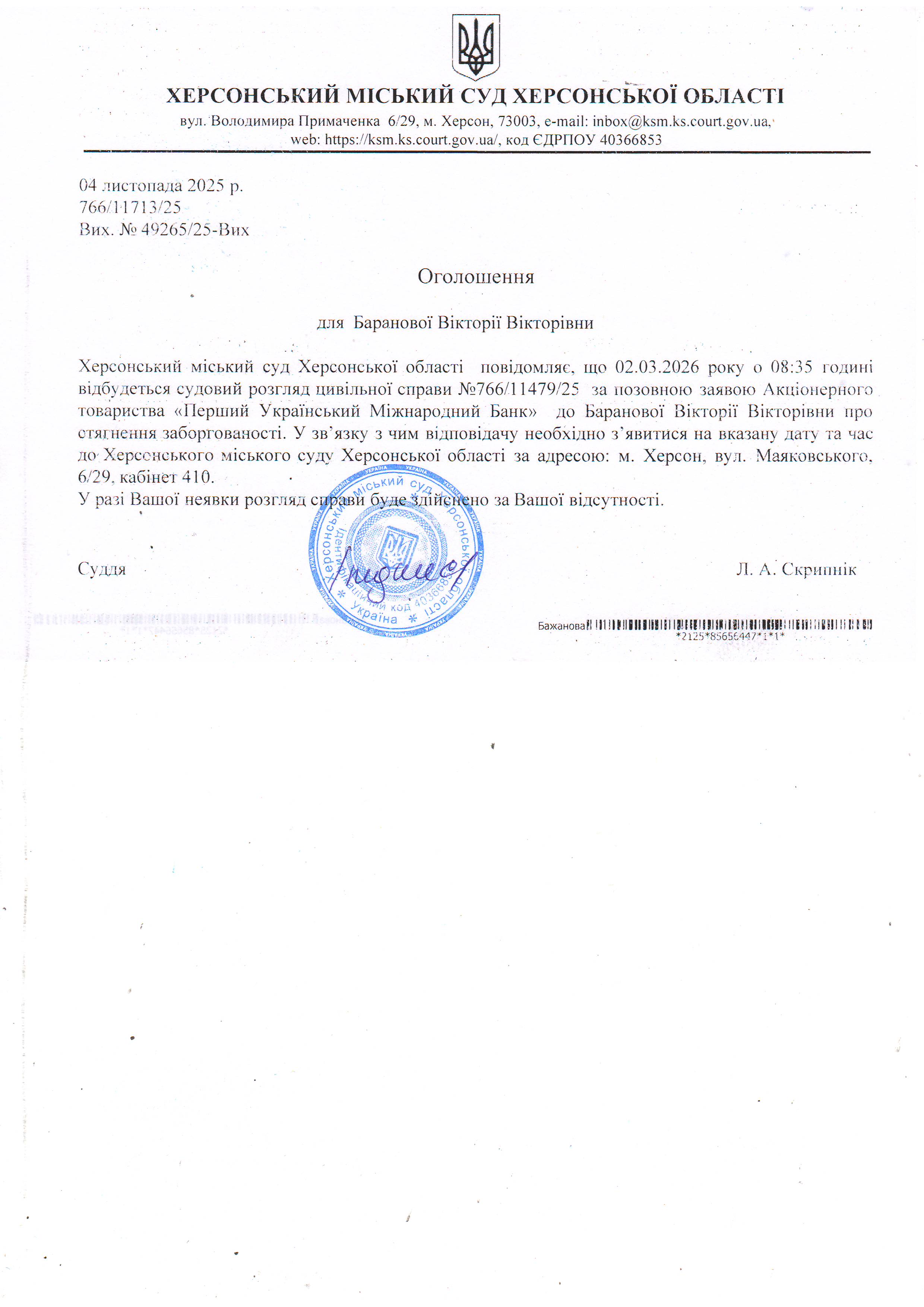 ОГОЛОШЕННЯ ПРО ВИКЛИК ДО СУДУ