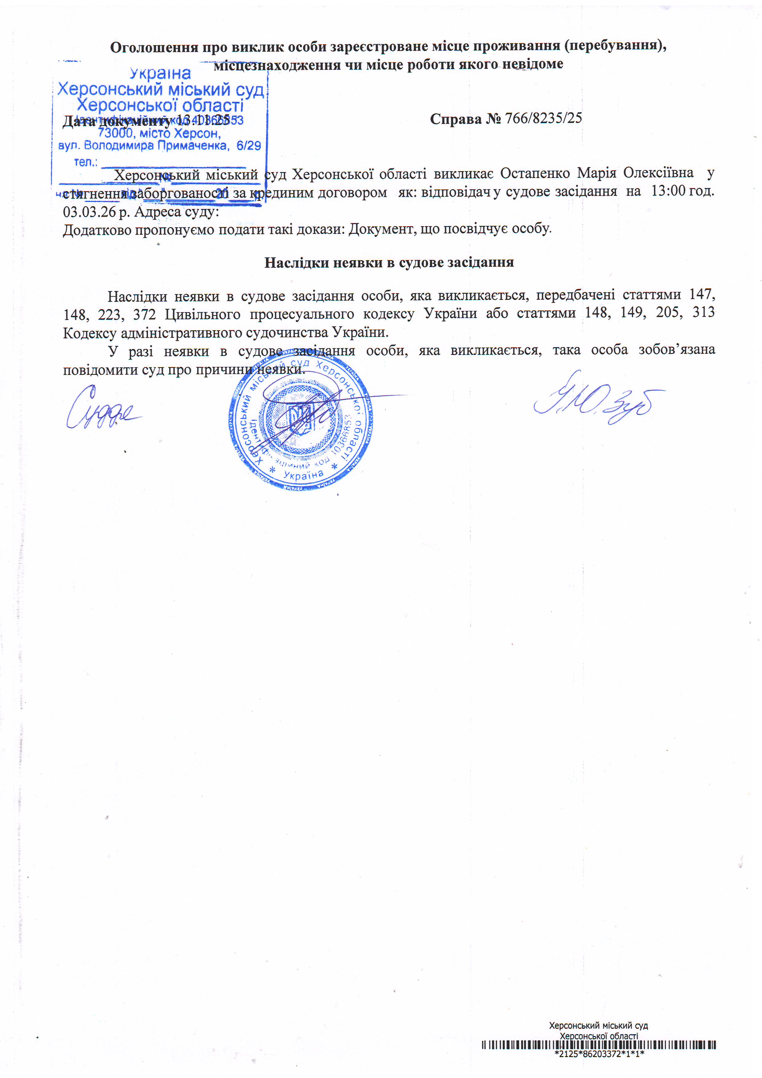 ОГОЛОШЕННЯ ПРО ВИКЛИК ДО СУДУ