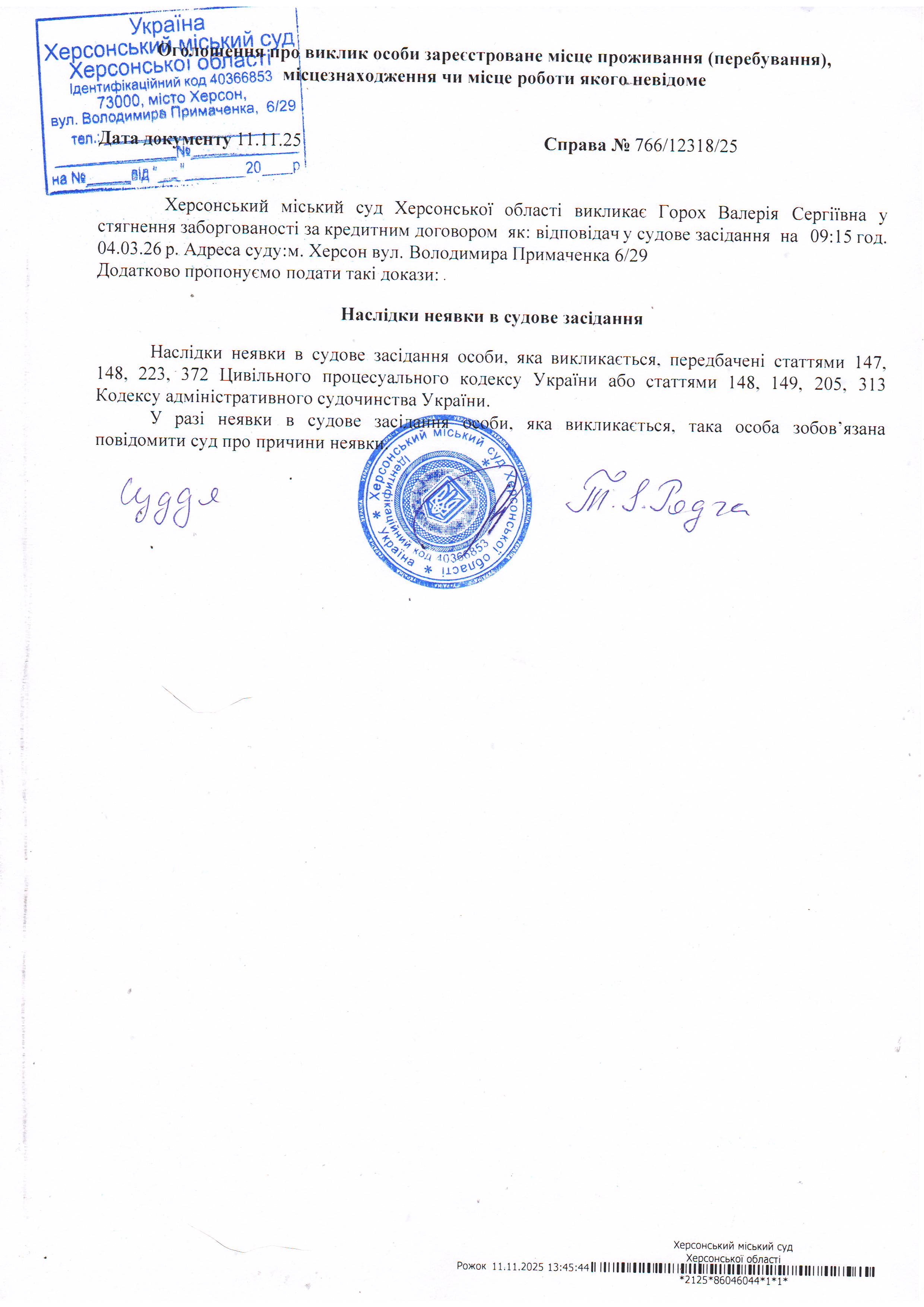 ОГОЛОШЕННЯ ПРО ВИКЛИК ДО СУДУ