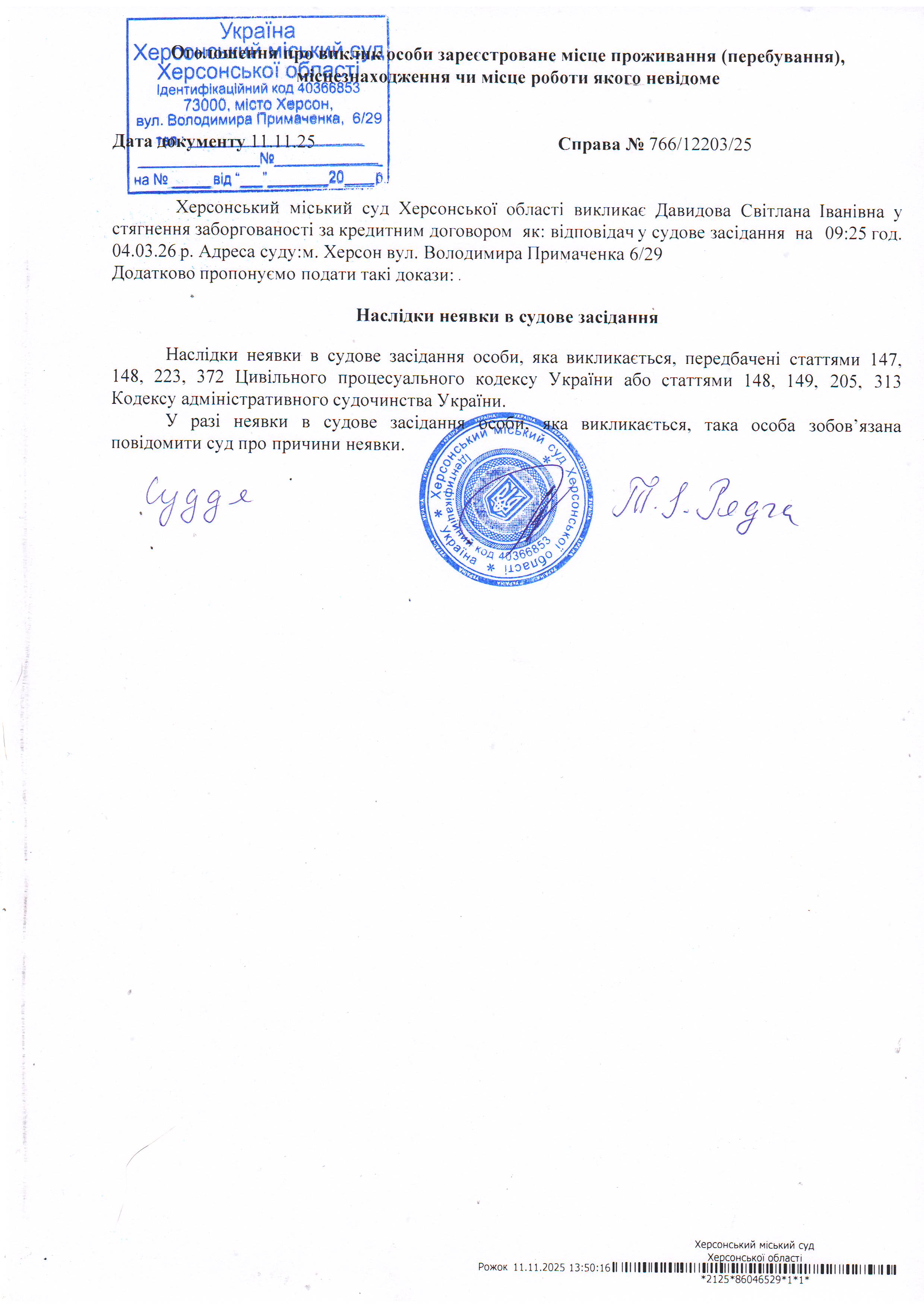 ОГОЛОШЕННЯ ПРО ВИКЛИК ДО СУДУ