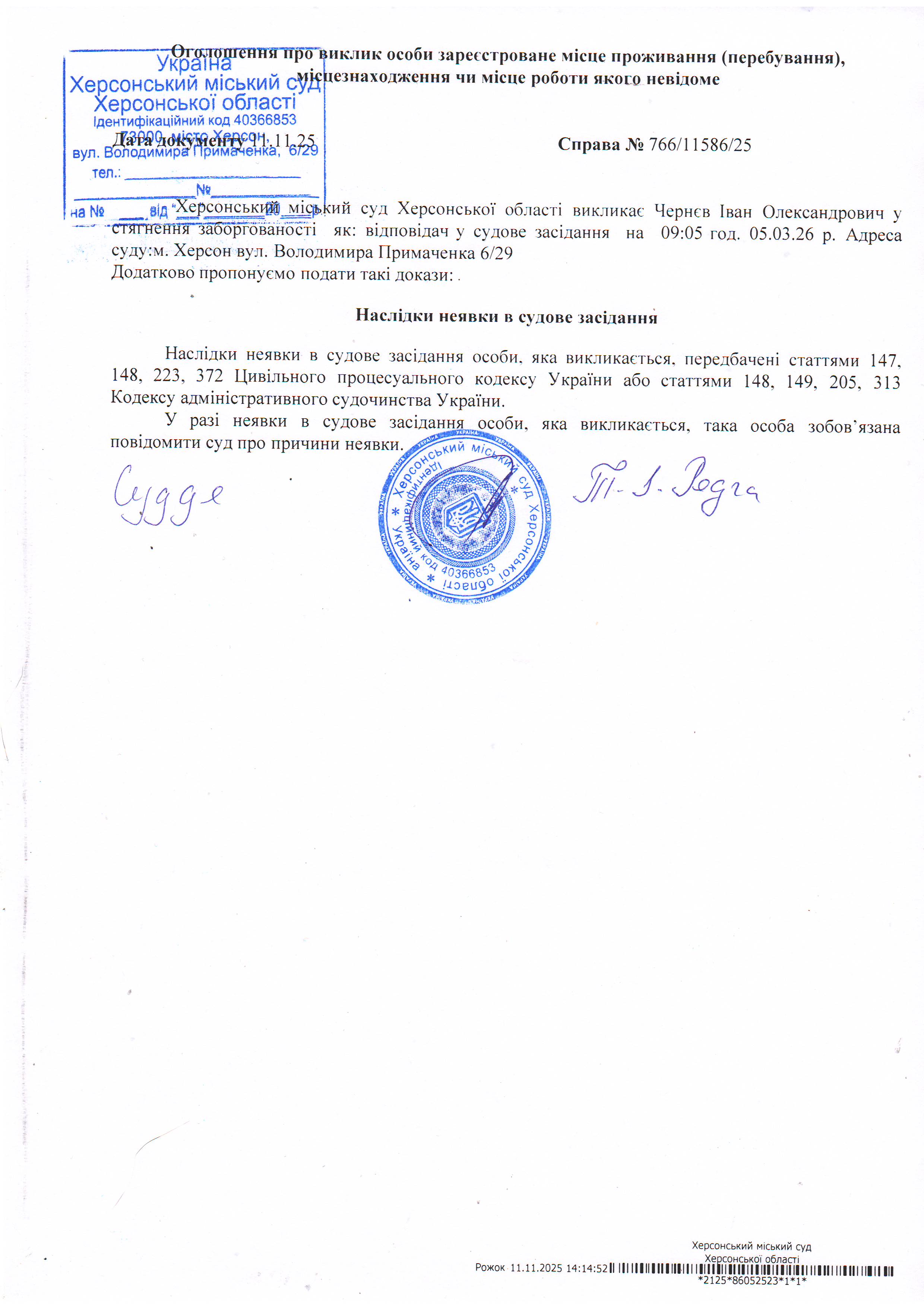 ОГОЛОШЕННЯ ПРО ВИКЛИК ДО СУДУ