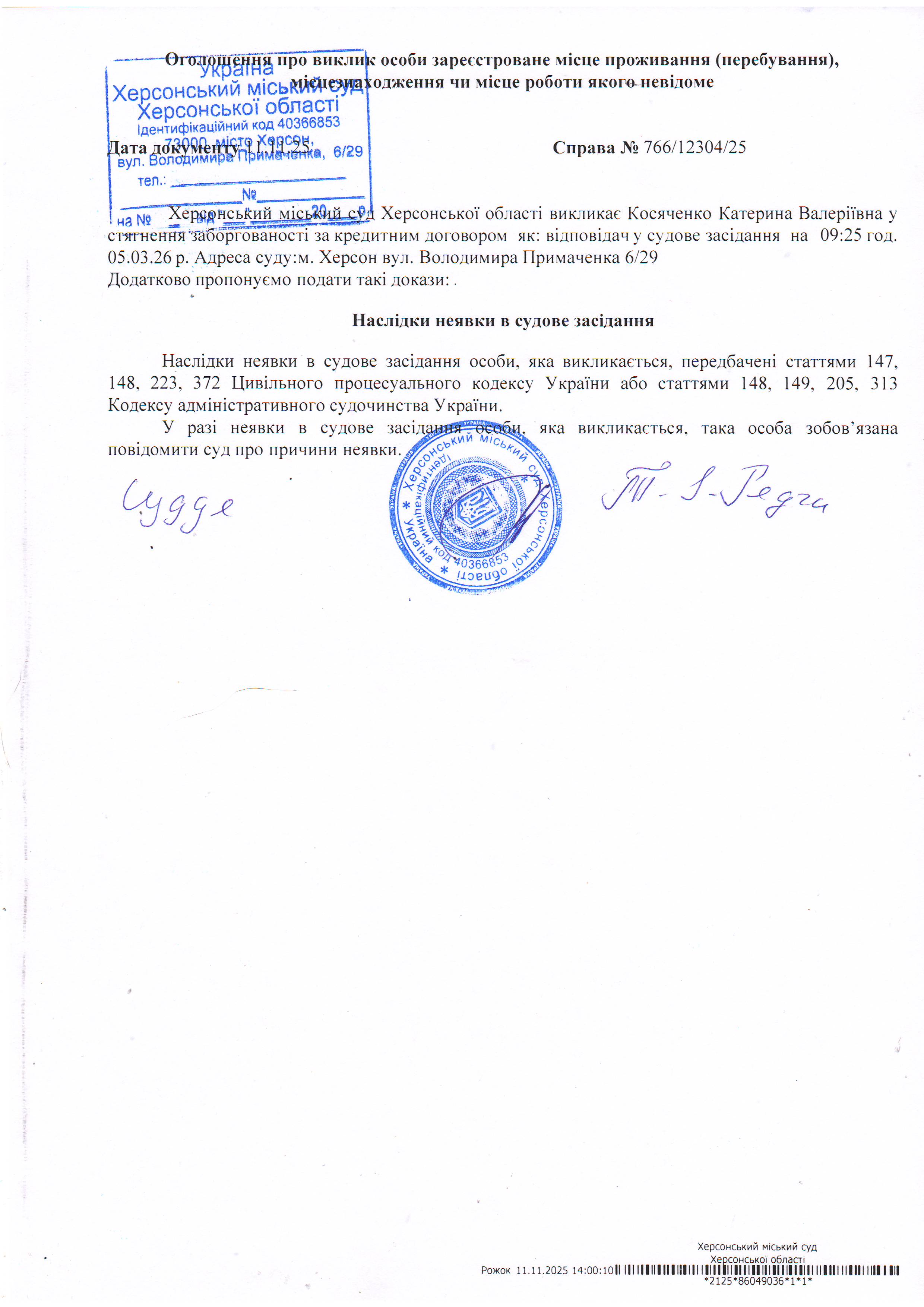 ОГОЛОШЕННЯ ПРО ВИКЛИК ДО СУДУ