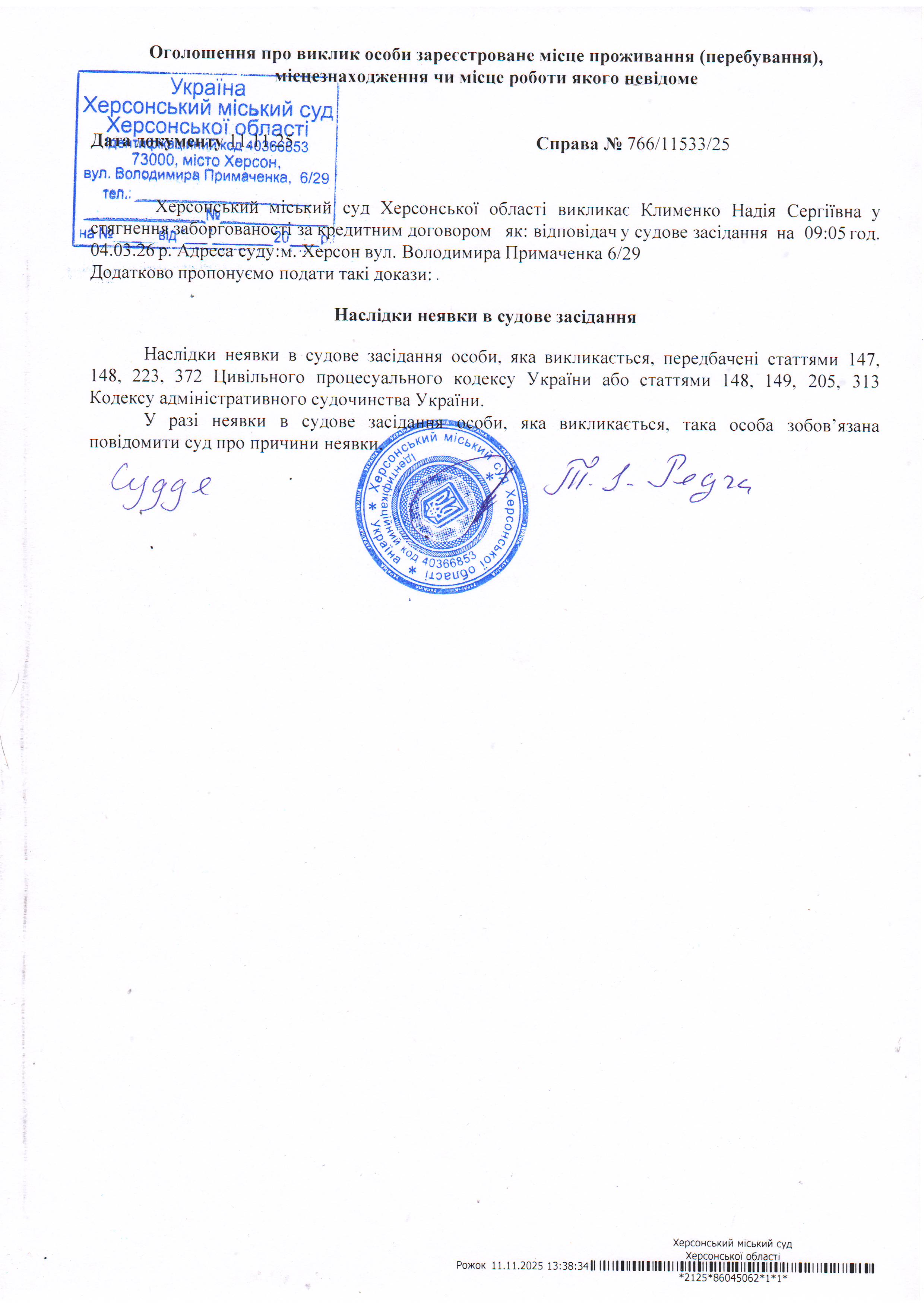 ОГОЛОШЕННЯ ПРО ВИКЛИК ДО СУДУ