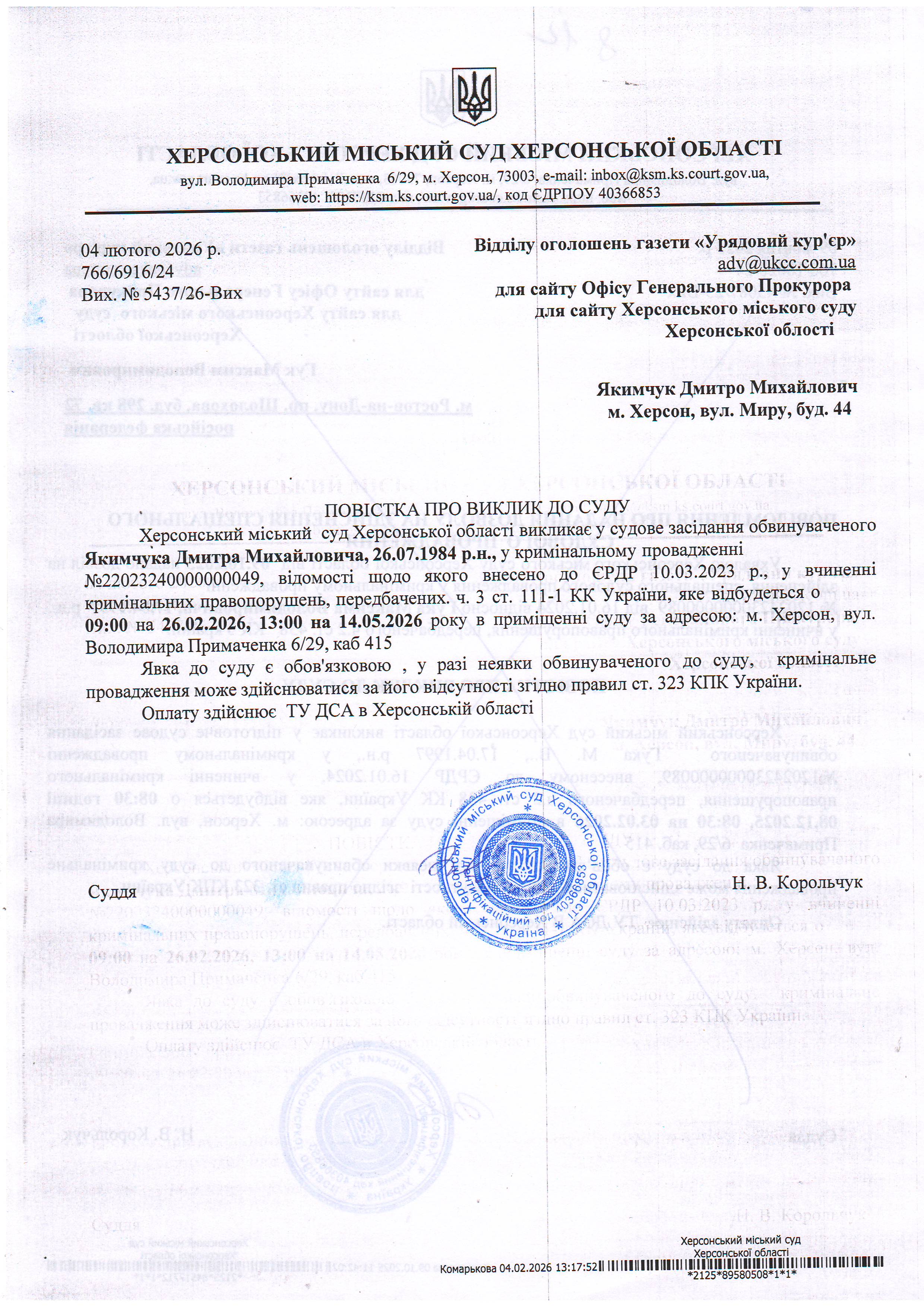 ОГОЛОШЕННЯ ПРО ВИКЛИК ДО СУДУ