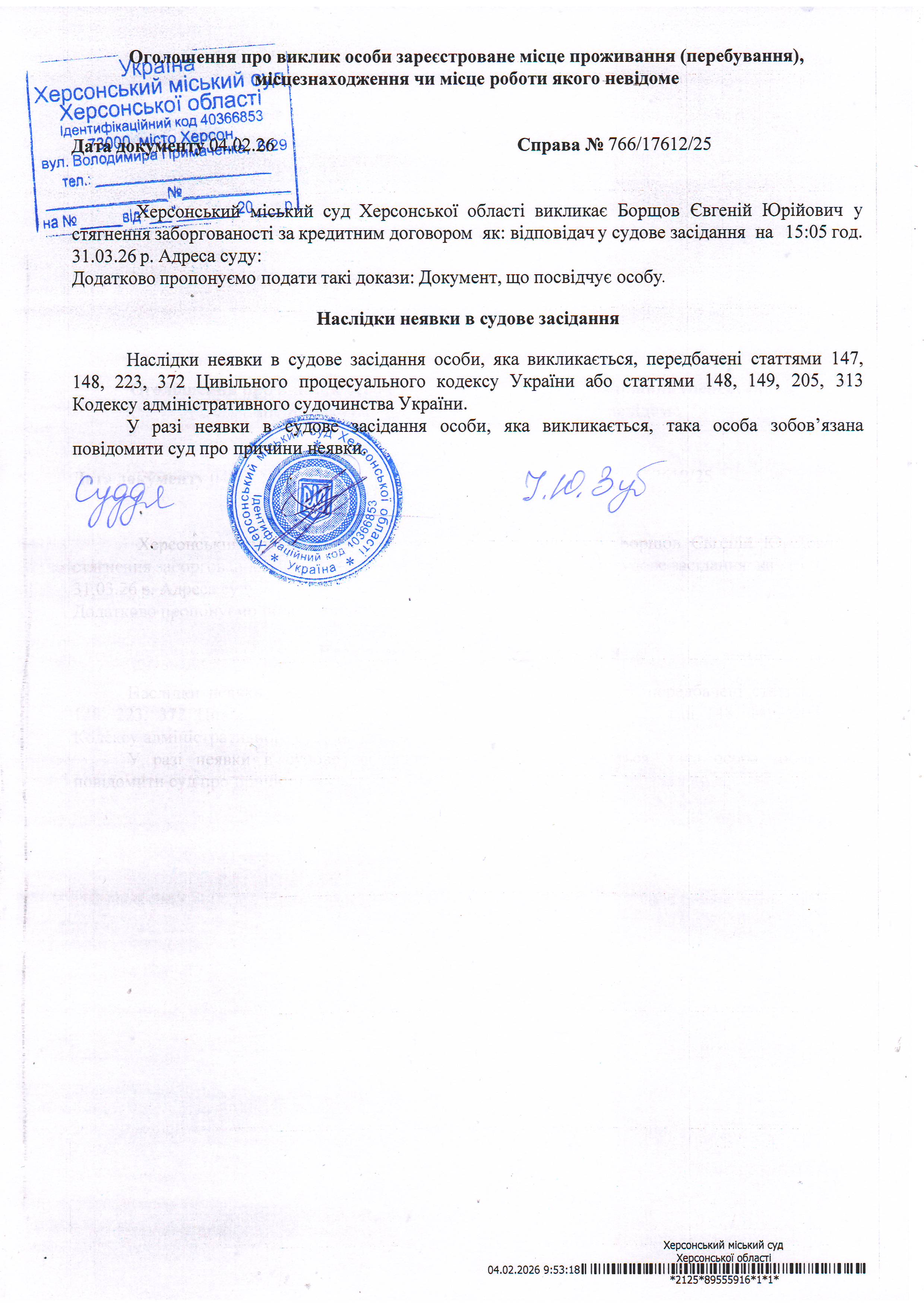 ОГОЛОШЕННЯ ПРО ВИКЛИК ДО СУДУ