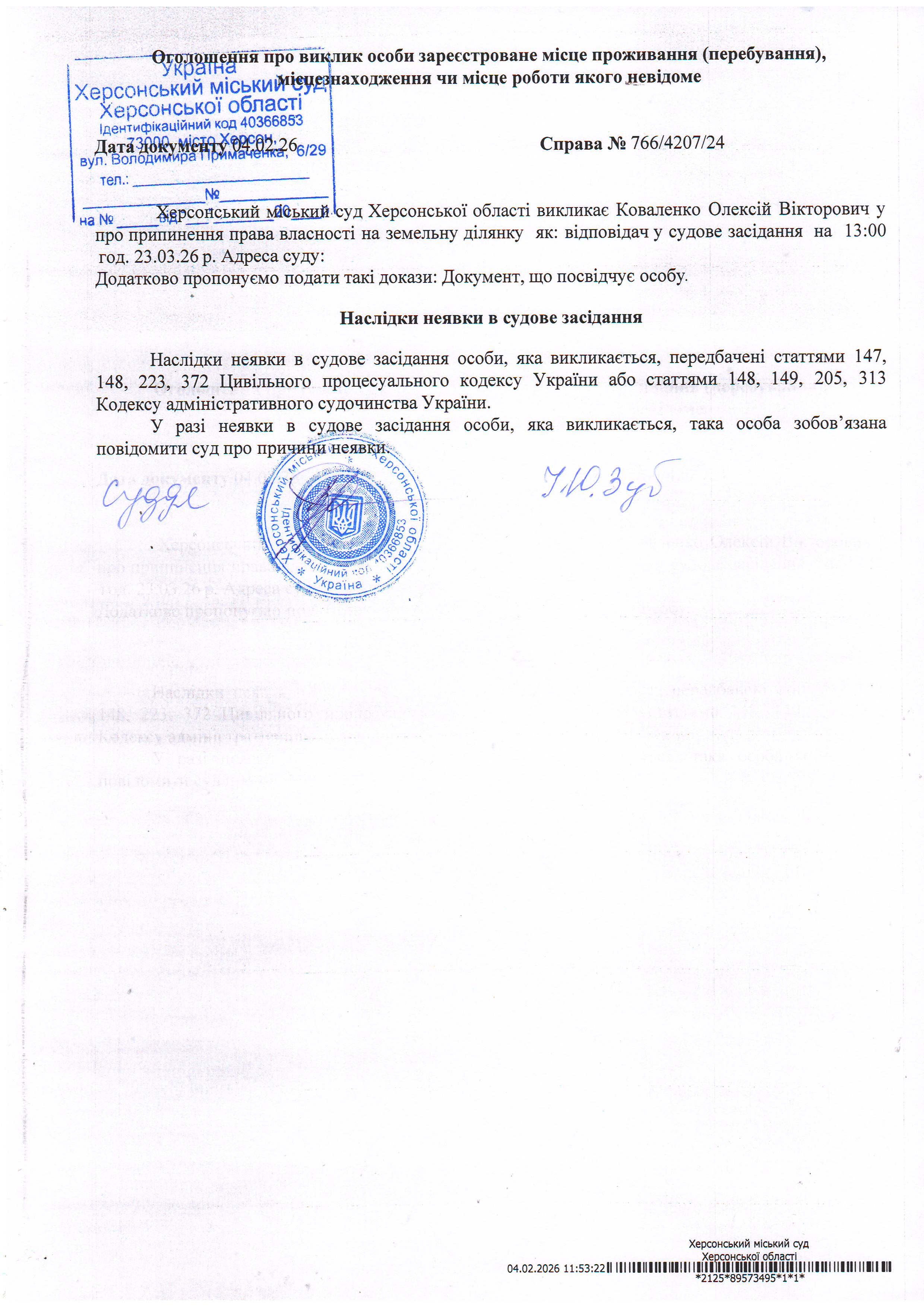 ОГОЛОШЕННЯ ПРО ВИКЛИК ДО СУДУ
