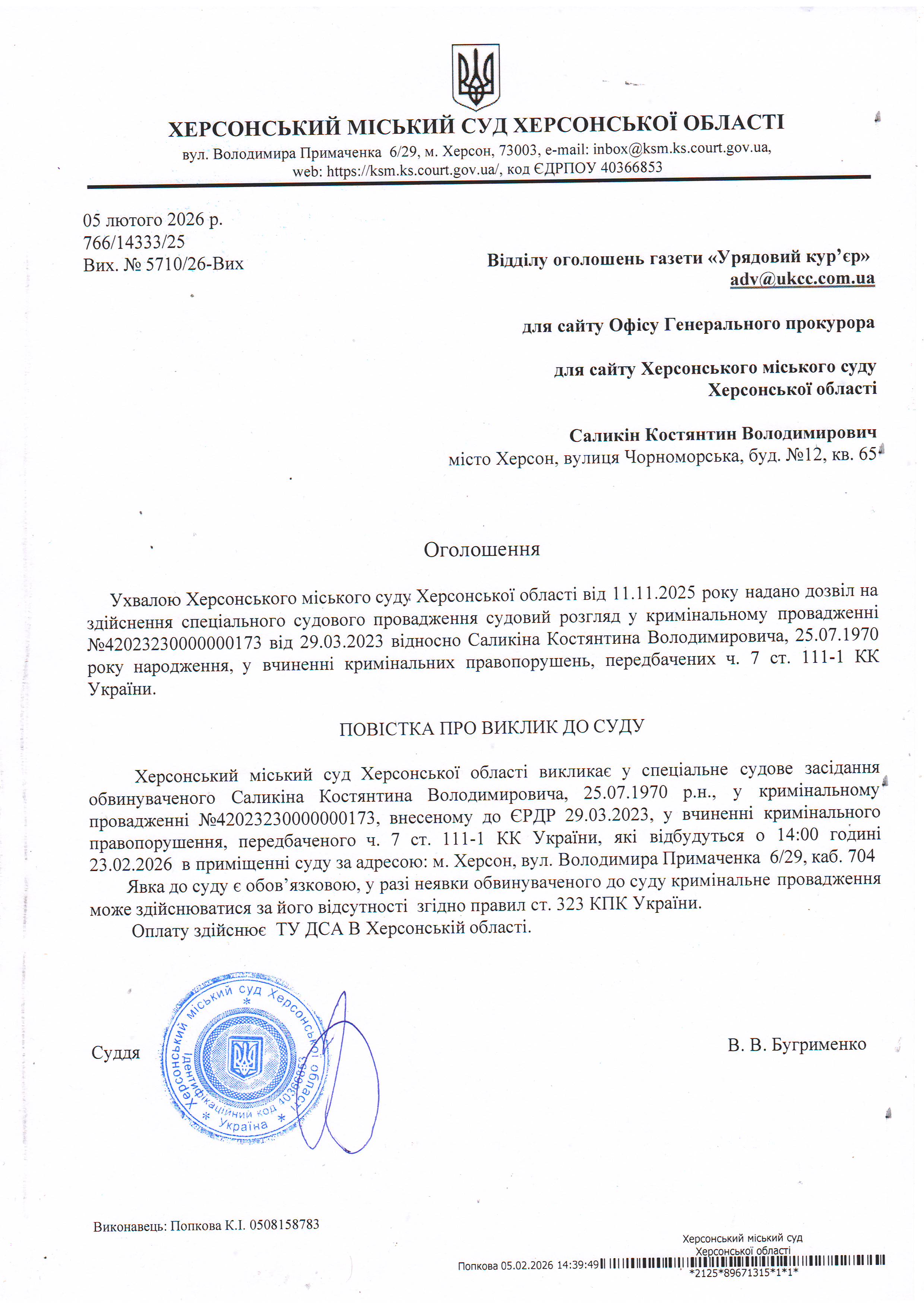 ОГОЛОШЕННЯ ПРО ВИКЛИК ДО СУДУ