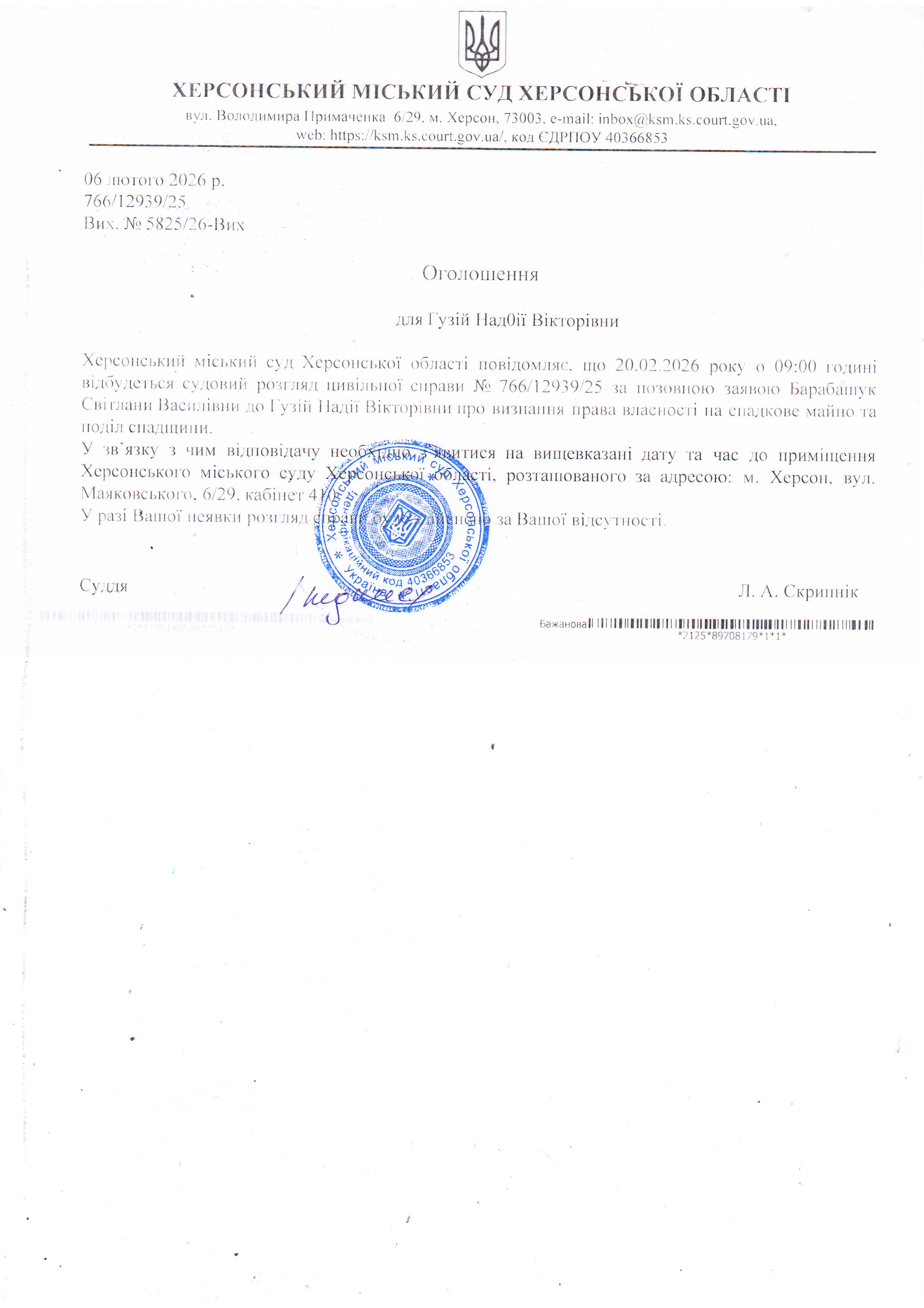 ОГОЛОШЕННЯ ПРО ВИКЛИК ДО СУДУ