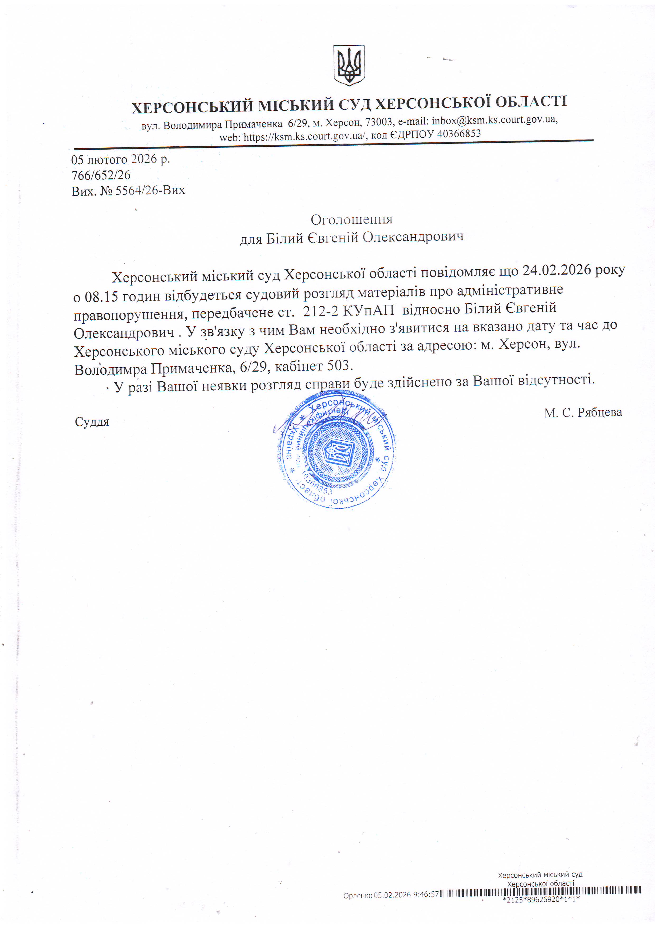 Оголошення про виклик особи в суд та повідомлення про судове рішення