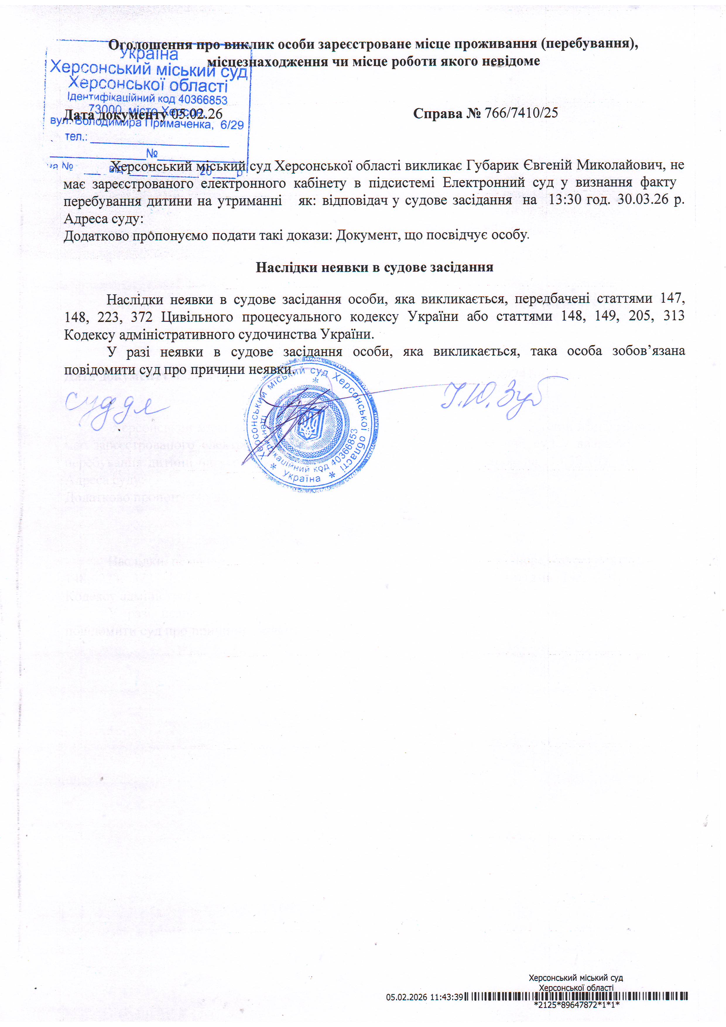 Оголошення про виклик особи в суд та повідомлення про судове рішення