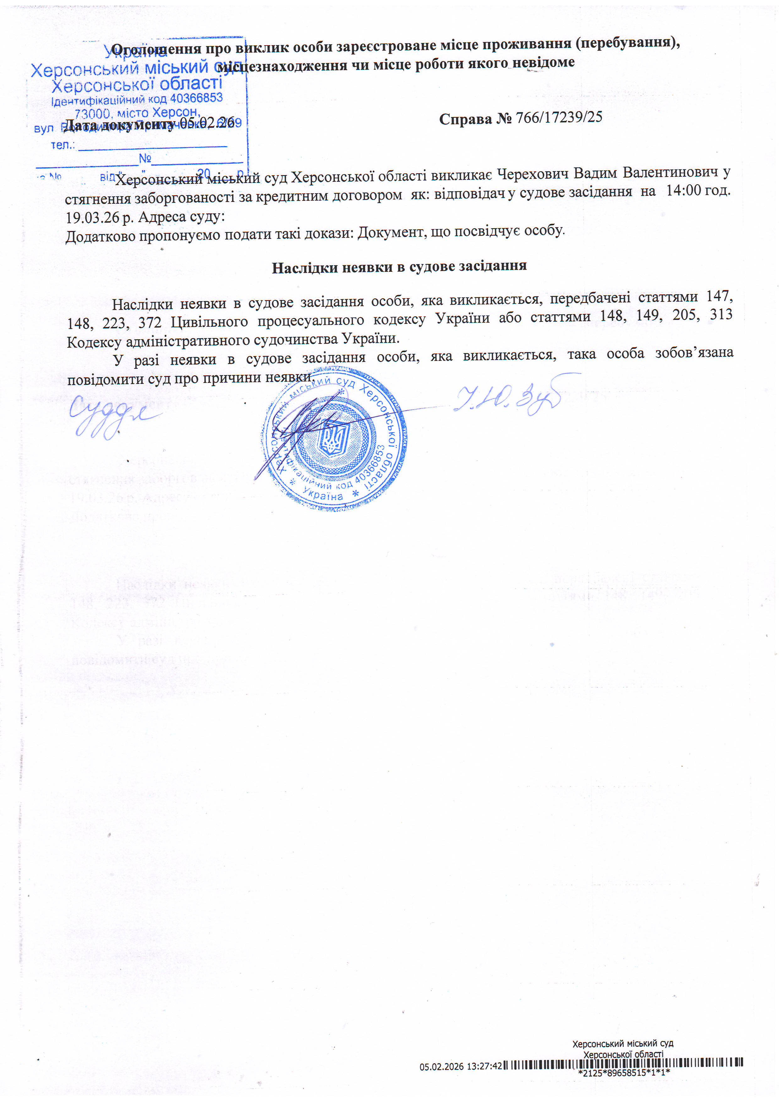ОГОЛОШЕННЯ ПРО ВИКЛИК ДО СУДУ
