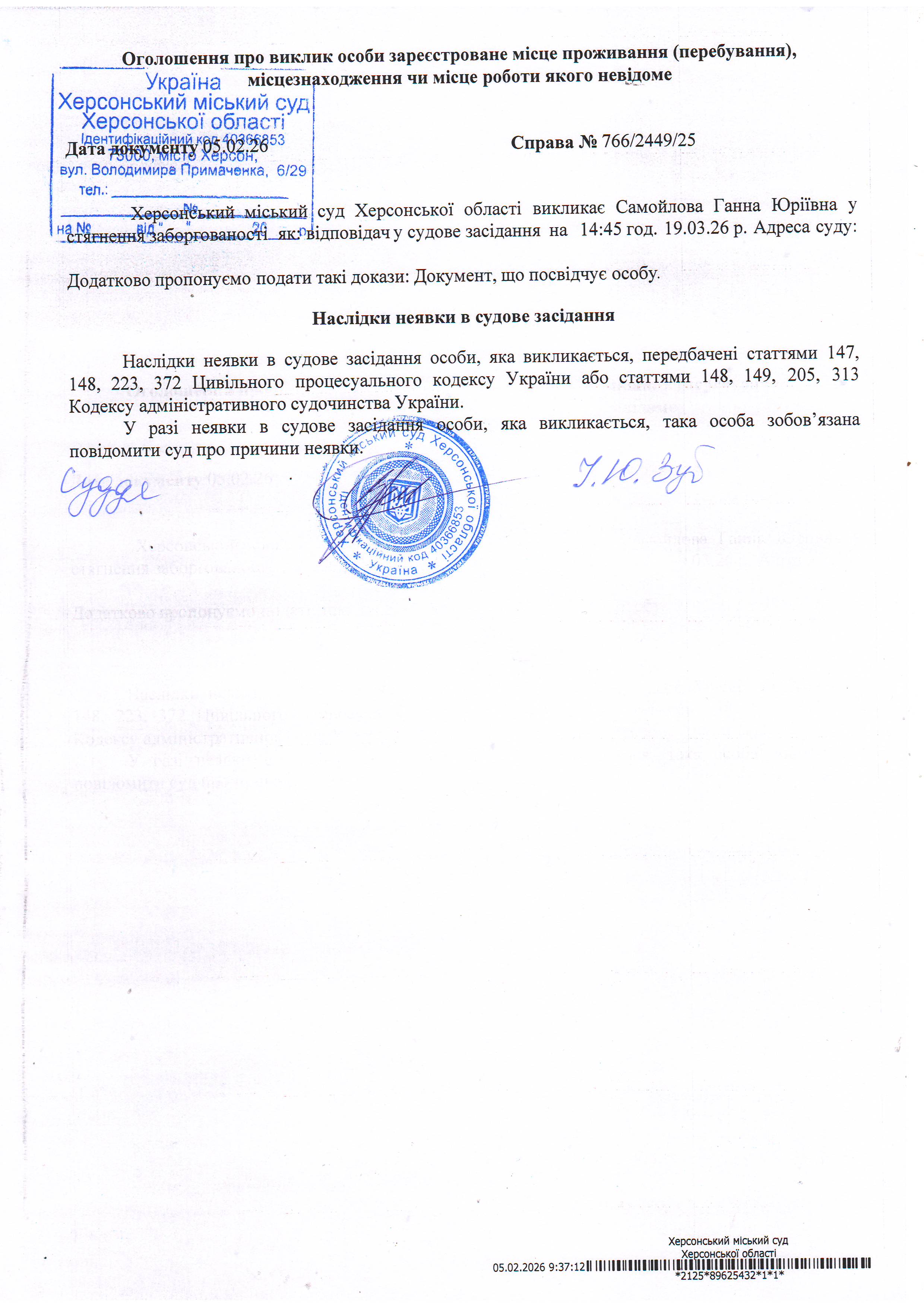 ОГОЛОШЕННЯ ПРО ВИКЛИК ДО СУДУ