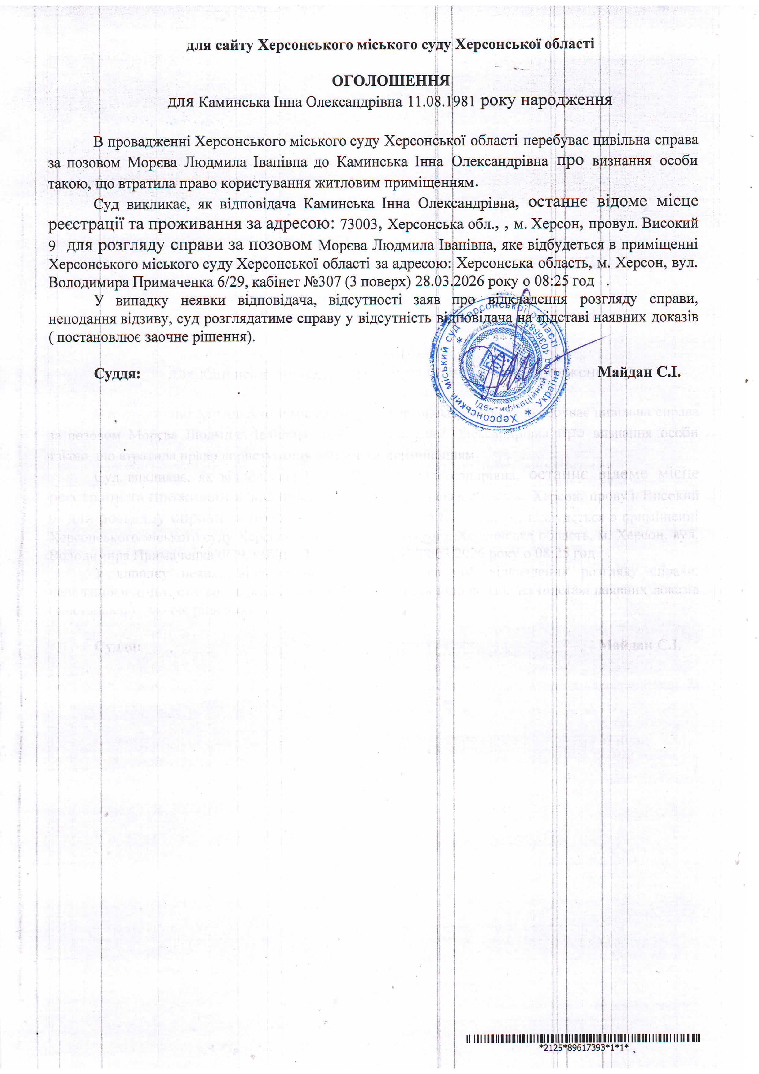 ОГОЛОШЕННЯ ПРО ВИКЛИК ДО СУДУ