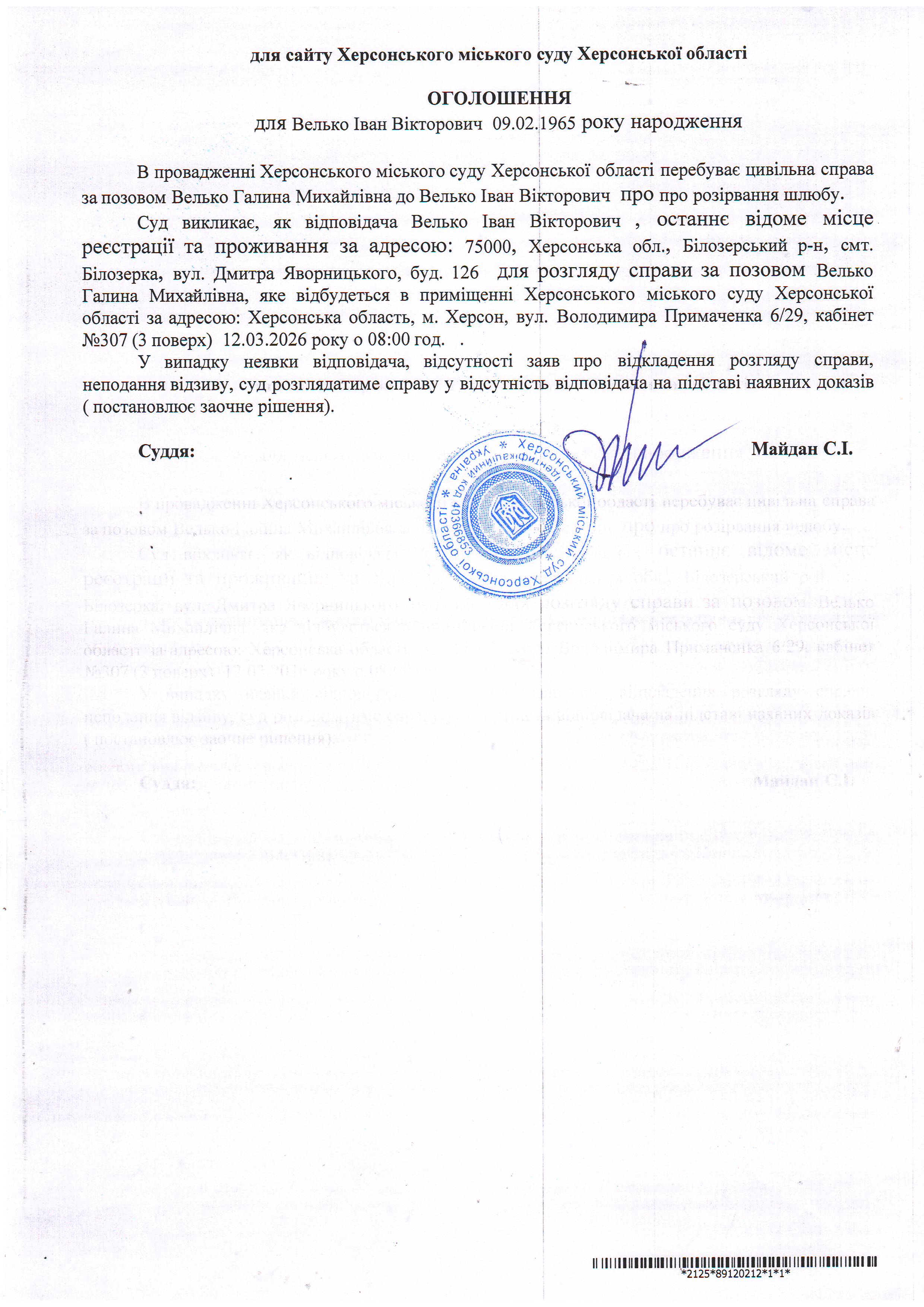 ОГОЛОШЕННЯ ПРО ВИКЛИК ДО СУДУ