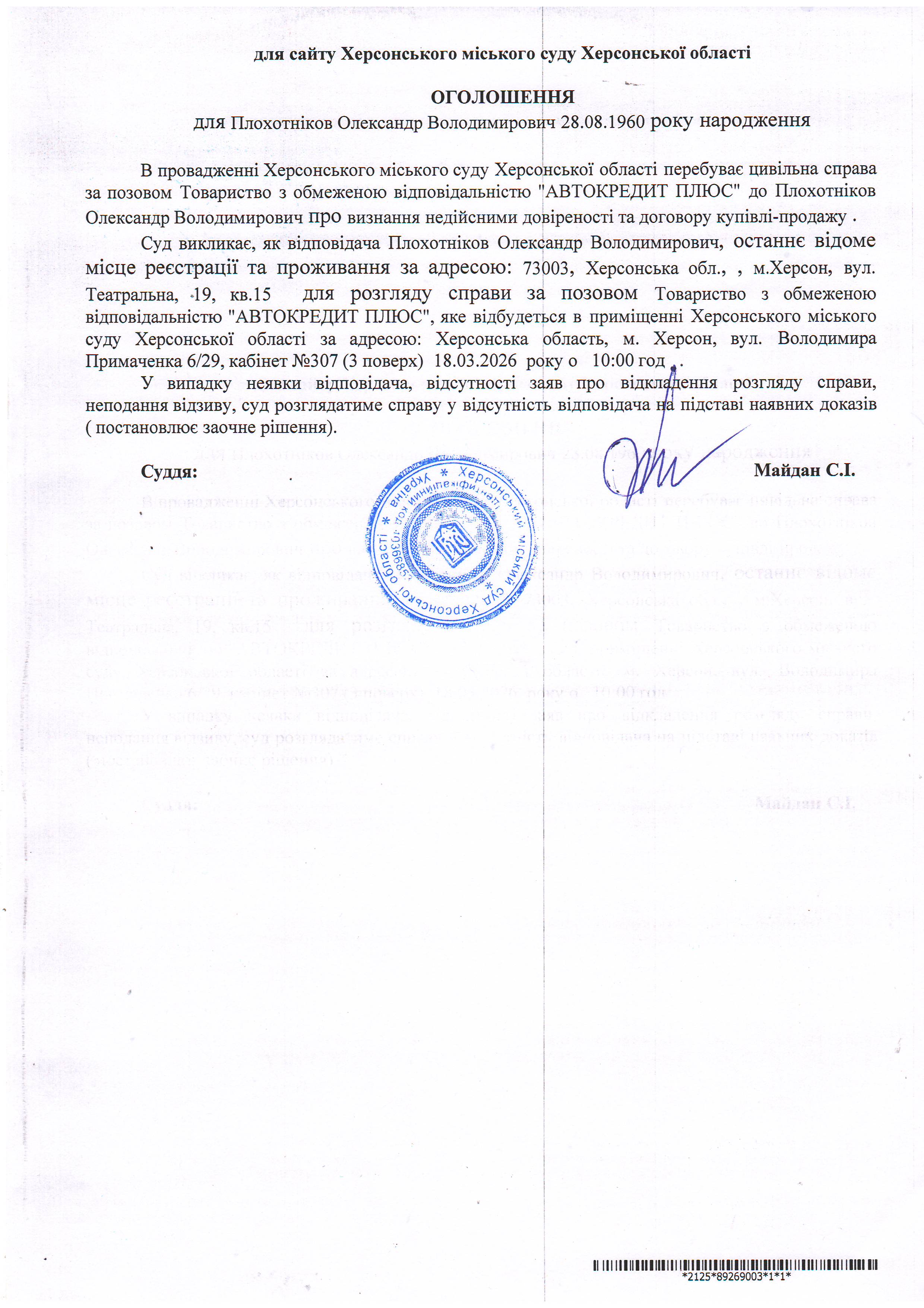 ОГОЛОШЕННЯ ПРО ВИКЛИК ДО СУДУ