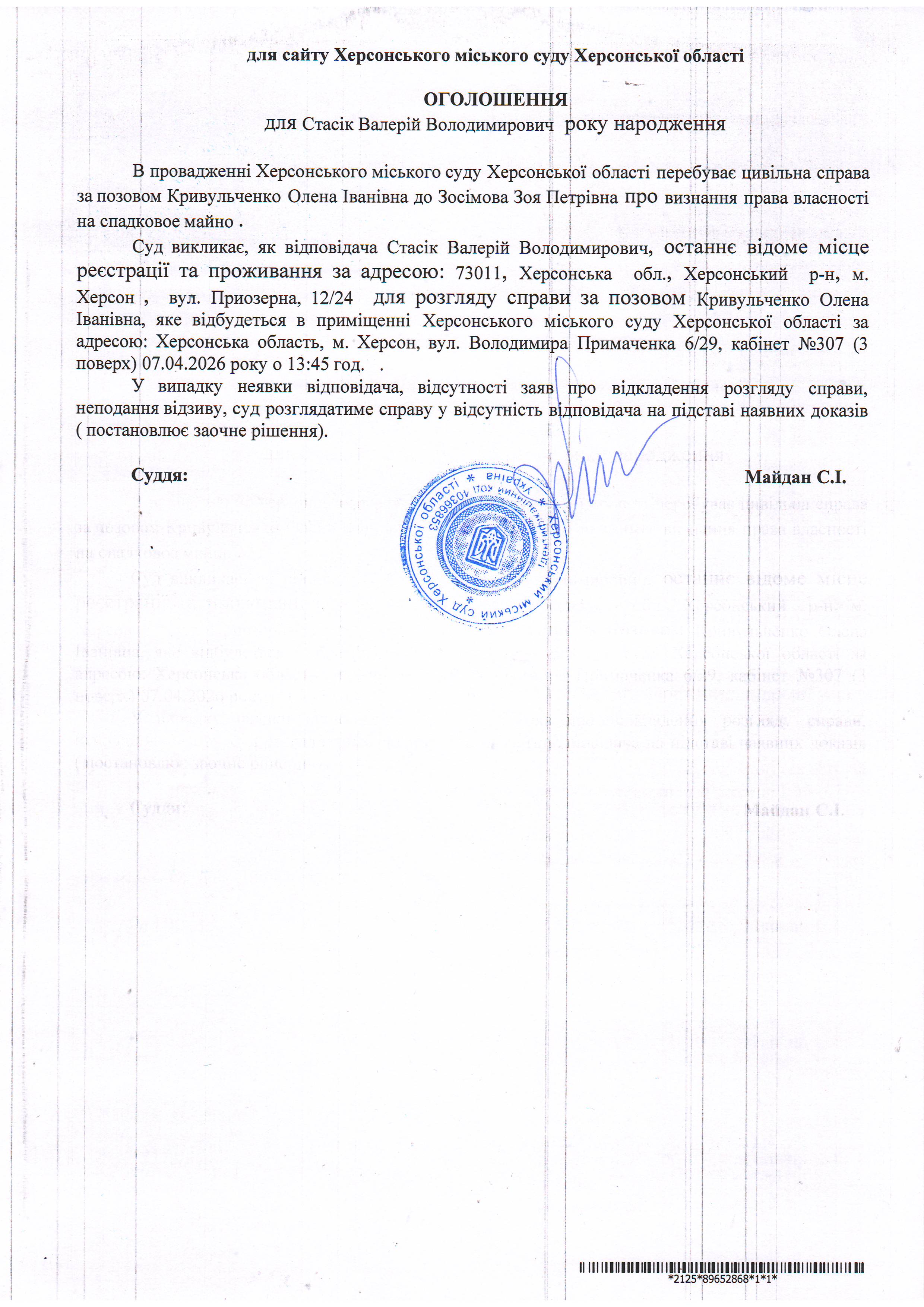 ОГОЛОШЕННЯ ПРО ВИКЛИК ДО СУДУ
