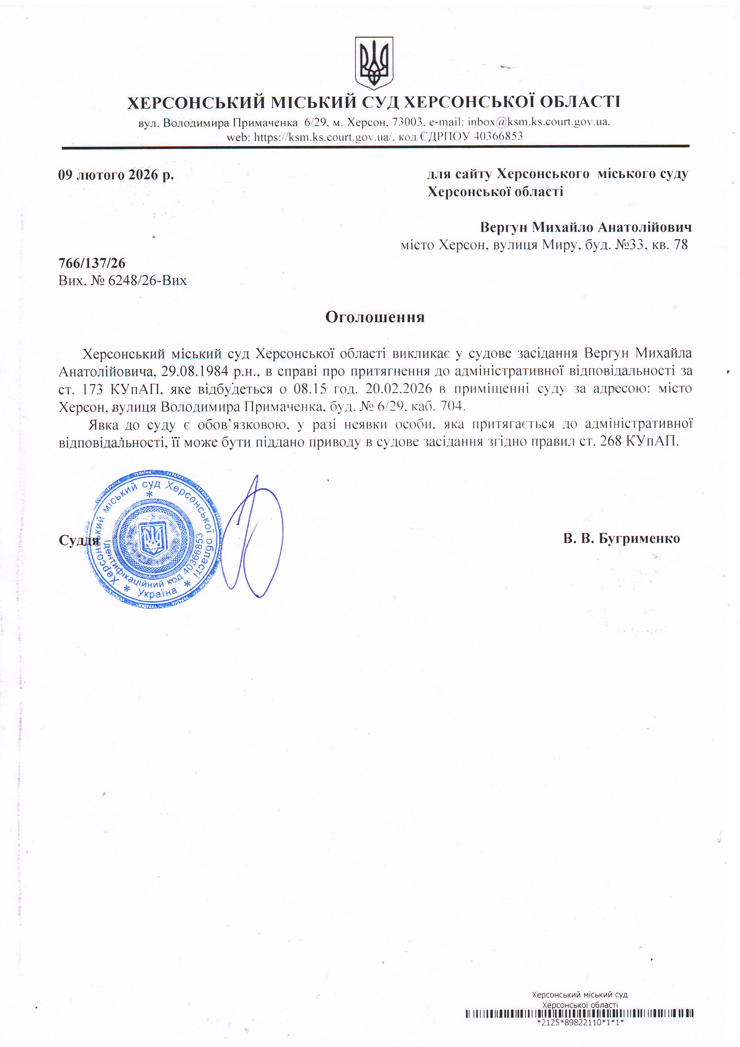 ОГОЛОШЕННЯ ПРО ВИКЛИК ДО СУДУ