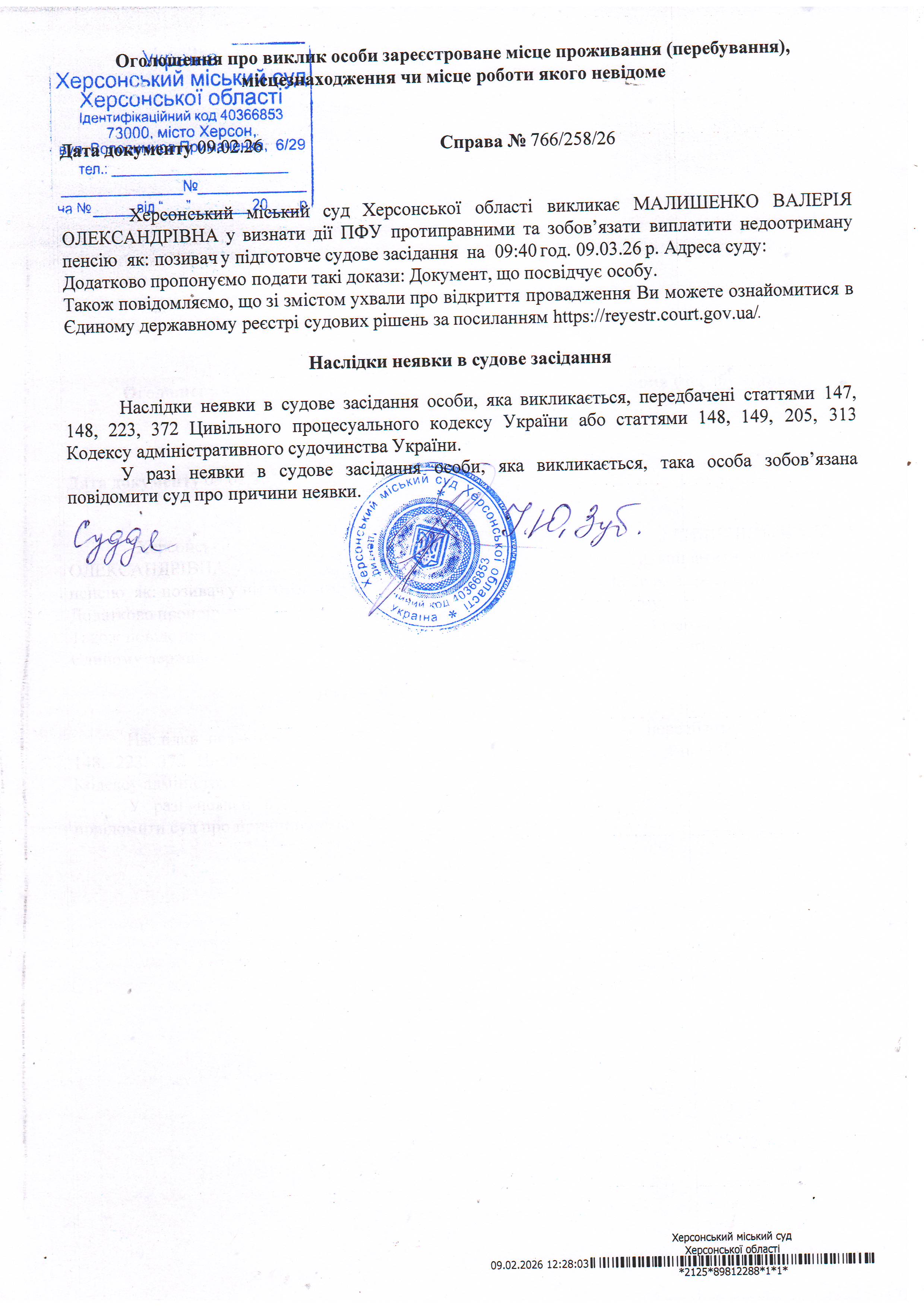 ОГОЛОШЕННЯ ПРО ВИКЛИК ДО СУДУ