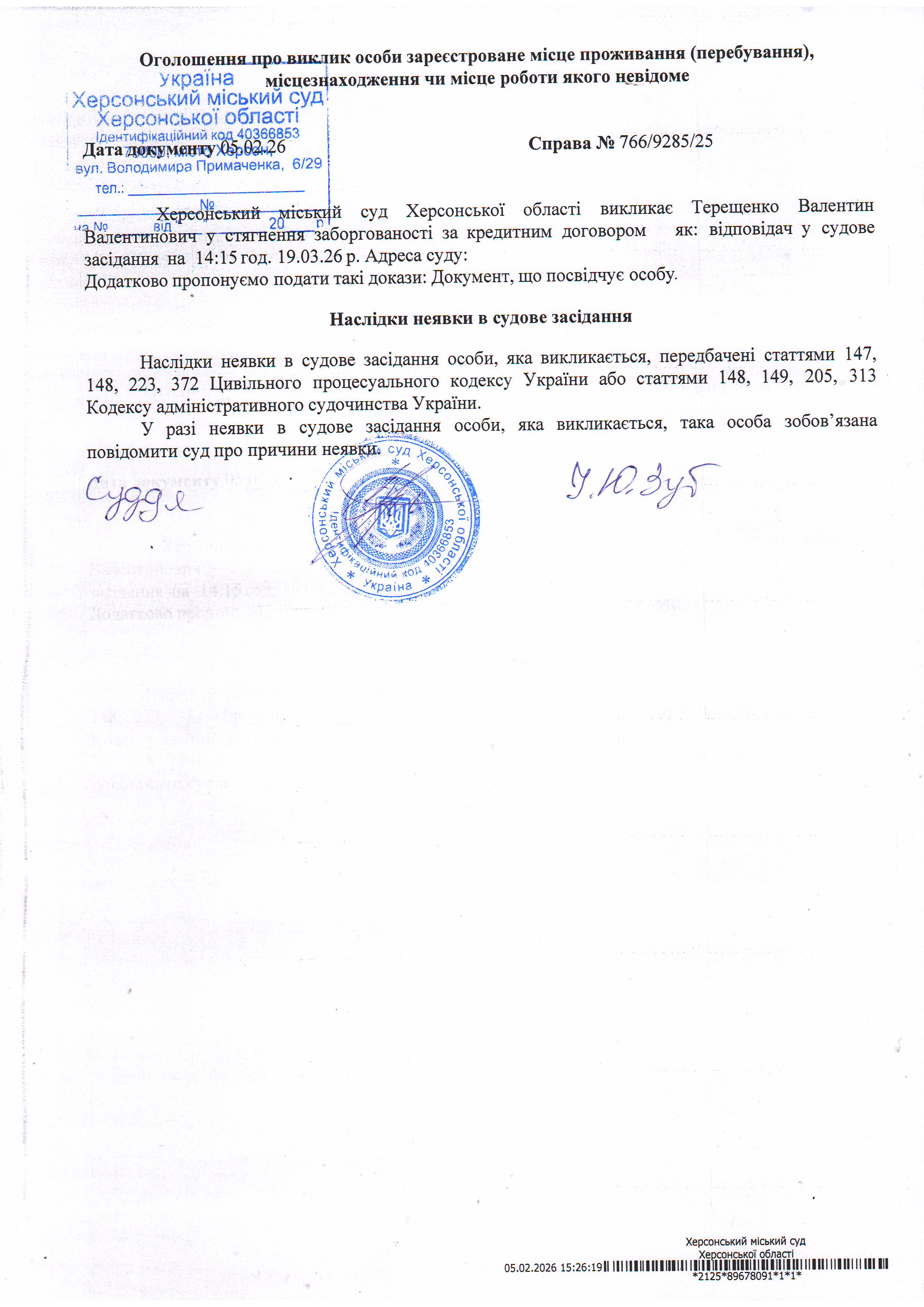 ОГОЛОШЕННЯ ПРО ВИКЛИК ДО СУДУ