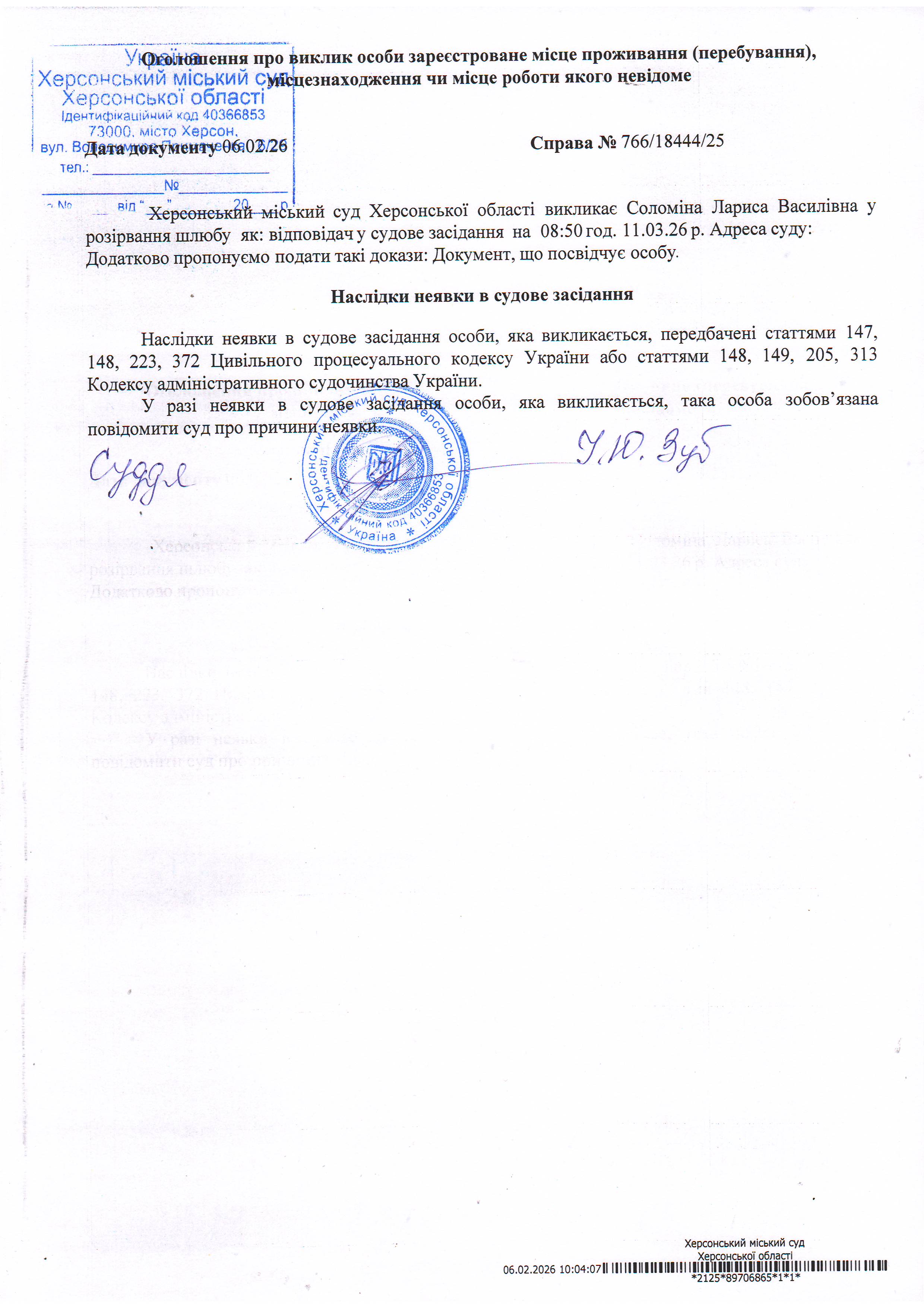 ОГОЛОШЕННЯ ПРО ВИКЛИК ДО СУДУ