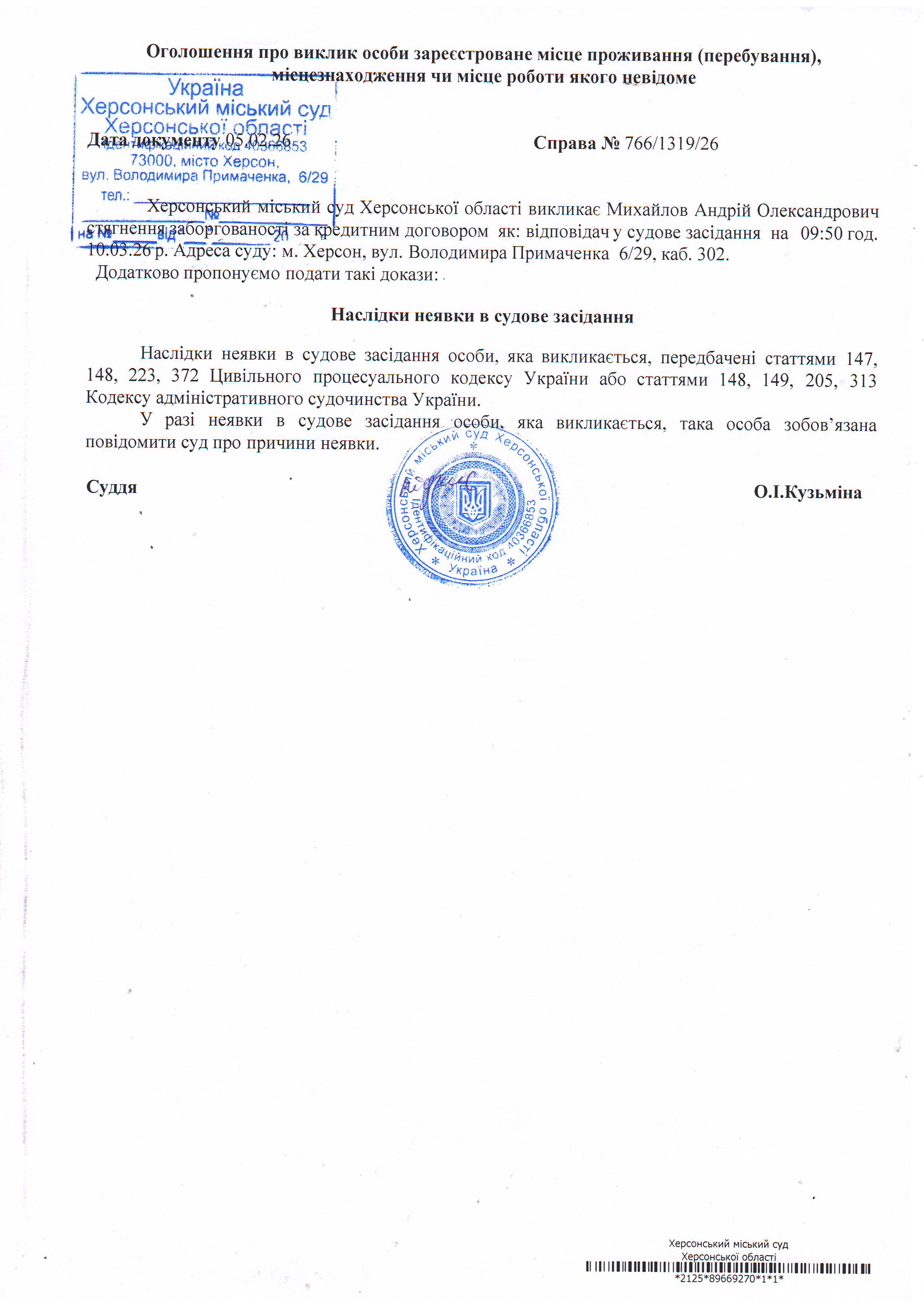 ОГОЛОШЕННЯ ПРО ВИКЛИК ДО СУДУ