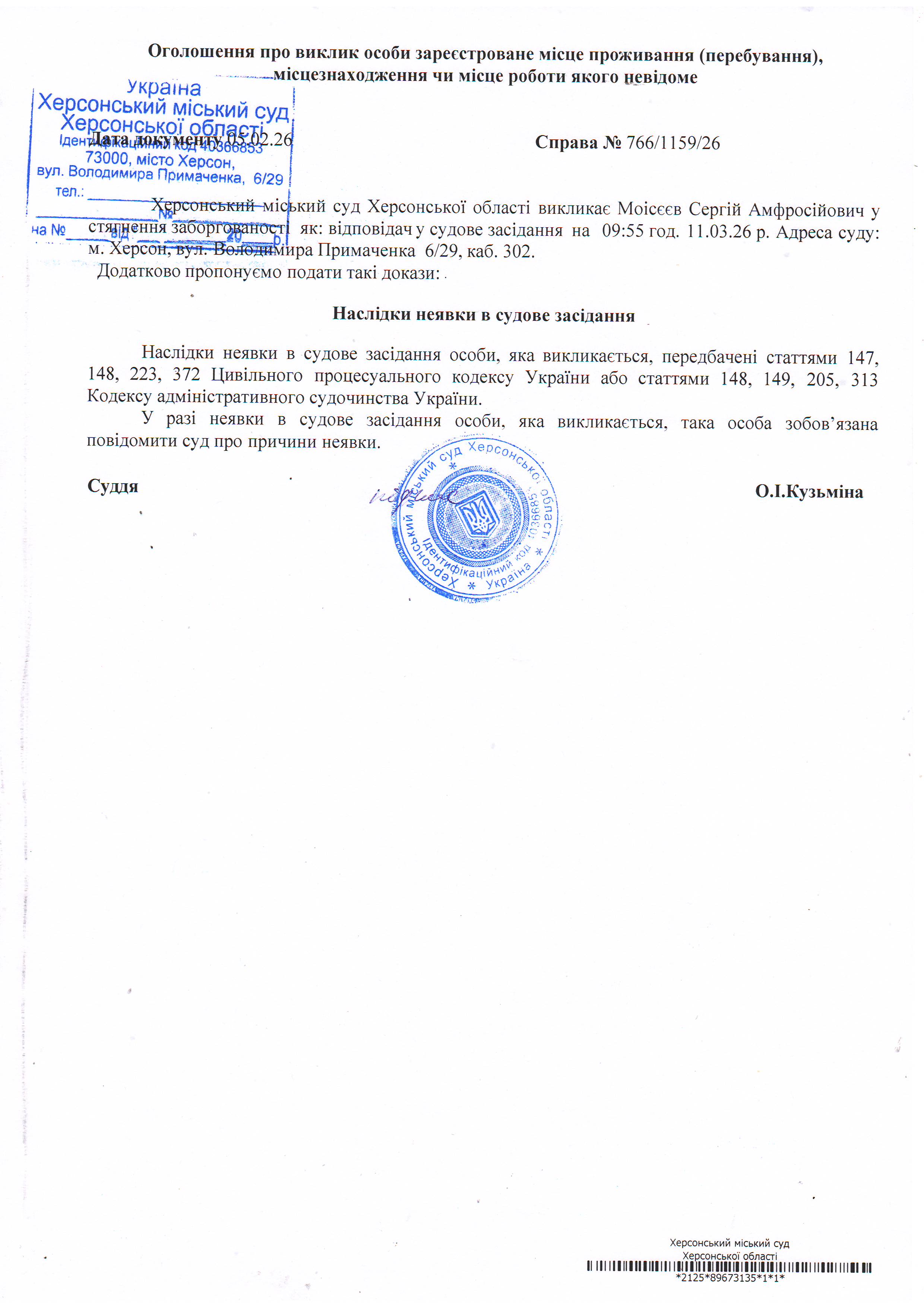 ОГОЛОШЕННЯ ПРО ВИКЛИК ДО СУДУ